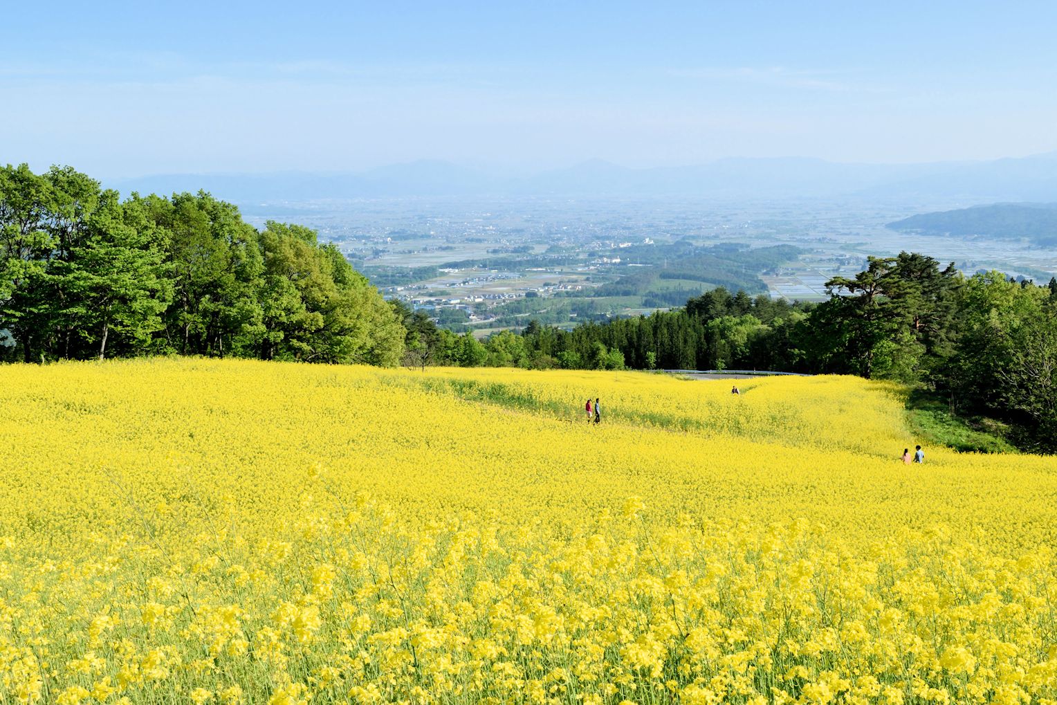 左画像と同じ「三の倉スキー場」の菜の花です。好みによりますが、向日葵も圧巻ですが菜の花も斜面を黄色一色に染めた様も素敵です。自然のお花畑と言えば、ここより南東にある磐梯山系のミニ尾瀬の様な小国沼湿原と言う、季節にはニッコウキスゲやワタスゲなどの花が咲き乱れる場所もあります。
