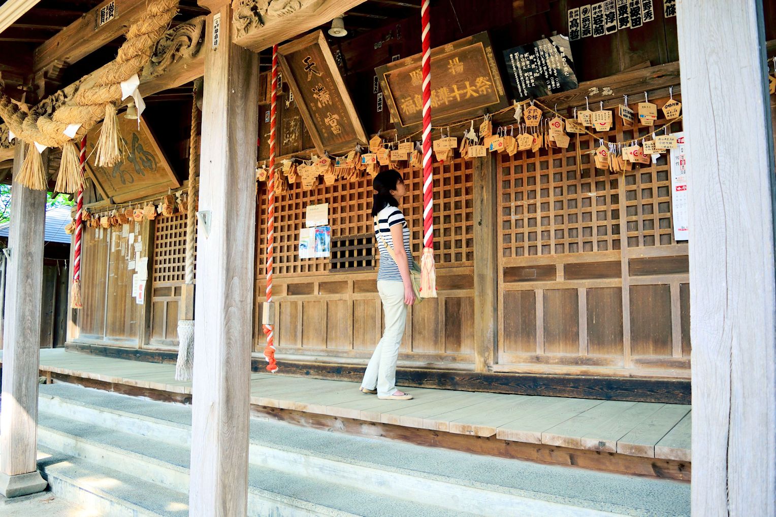 左画像と同じ「小平潟天満宮」のお社です。太宰府天満宮と北野天満宮と並び日本三大天満宮の一つと言う説もあるようですが、地元はそんな事はおくびにも気にしない様子で、ひっそりとした風情のある景観です。それでもお社には菅原道真縁の場所として、受験合格祈願の絵馬がかかっていました。