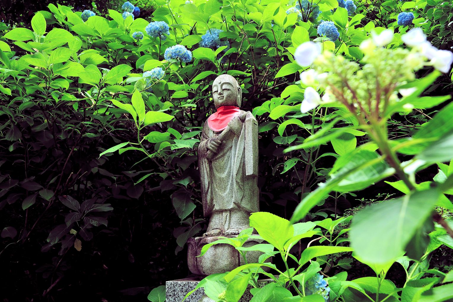 護法山光林寺は二本松市太田にある別名紫陽花寺知られるお寺です。お寺には5千の紫陽花が、梅雨を迎える頃に山の斜面一体に咲きます。お堂のお庭も端麗に手入れが行届き、ご住職の人柄がうかがえる素敵なお寺です。静寂の中に紫陽花や緑に包まれると、心も洗われる気持ちで散策を楽しむことが出来ました。