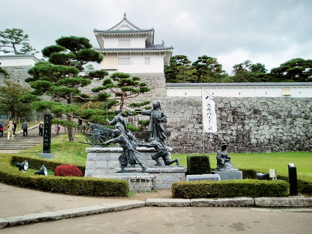 3.11の震災と原発事故で忘れられなくなった福島県です。亡くなられた方へご冥福と今なお苦しい生活を強いられている方々に、一日も早い平穏な生活が戻ります様お祈り申し上げます。今NHKの大河ドラマで「八重の桜」が放送されていますが、同じ福島県でもこれは会津藩の話で、そこは若くして切腹し散った白虎隊の舞台です。私が訪問した二本松城も同じ戊辰戦争の舞台となったお城ですが、しかし残念ながら全く有名ではありません。会津の白虎隊よりも年若い13歳〜17歳少年たち62名が、しかも実際の戦いで散っていった舞台なのです。時代の背景には必ず犠牲者がつきものですが、決して忘れてはならない繰り返してはいけないのが戦なのです。二本松ではこの犠牲となった隊士を少年隊と呼びますが、その御墓は市内の大隣寺(たいりん寺)あります。さて古くは室町時代に遡りますが、奥州探題の畠山一族七代目二本松満泰か嘉吉が築いたと云われています。二本松氏も安土時代には伊達氏に攻撃を受け開城し、片倉景綱、伊達成実が城代となりましたが、政宗の岩出山城移封により若松城から蒲生氏郷が転封され支城となり、また上杉景勝も米沢城主の前は二本松に滞在していました。下条、梅原、門屋と城代が替わり徳川政権下なり、さらに松山城主の加藤嘉明が会津に入ると加藤の与力が城主なり、続いて丹羽長秀の孫が引き継いで明治維新を迎えるまでに至りました。戊辰戦争では奥州越列藩同盟に参加して新政府軍と戦い、既述の通り「二本松少年隊」まで動員されました。見どころは、春の桜で城山をはじめ市内至る所で観られます。また毎年10月4〜6日には日本三大提灯祭りの一つが催され、同時に城内には日本最大規模と言われる菊祭りで千輪咲きや菊人形が展示されます。別名霞ヶ城は日本百名城に登録されています。アクセスはJR東北本線「二本松駅」下車、徒歩約20分で行ける人は健脚です。坂が多い町なので頑張って下さい。