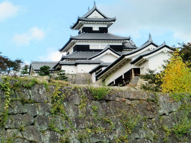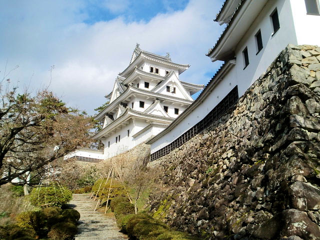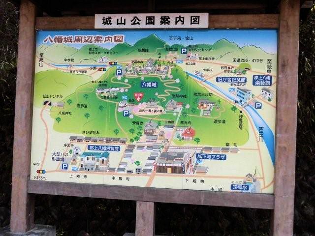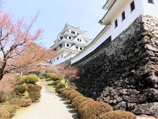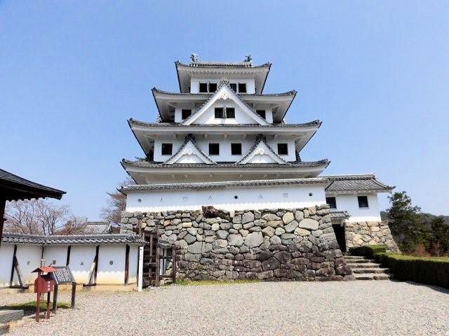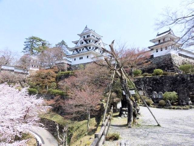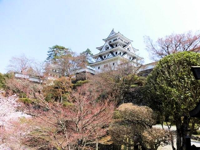 戦国時代末期、郡上一円は篠脇城を居城とする東氏(とうし)によって支配されていました。その後東氏は郡上八幡の町を挟んで反対側にある東殿山(とうどやま)に東殿山城を構えましたが、永禄2年(1559年)八幡山の上に砦を築いた遠藤盛数により滅ぼされました。遠藤氏は東殿山城を奪って郡上一円を支配したものの、この城を好まず東殿山城を攻撃した時の砦跡に城を築きました。これが郡上八幡城の起源だそうです。遠藤氏から稲葉貞通氏に一時城主が替わりましたが、関ヶ原の合戦以後遠藤氏が復帰し、その後は井上氏、金森、青山氏と替わり明治維新を迎えています。山頂へは舗装道路がありますが、山麓の駐車場には山内一豊と妻千代の銅像がありますので是非、観覧していって下さい。見どころは復元天守閣としては珍しい木造で造られている事。天守閣からの眼下の街並みは絶景なので堪能できると思います。アクセスは長良川鉄道「郡上八幡駅」、豆バスで10分、 バス停「郡上八幡城下町プラザ」下車、徒歩約20分。東海北陸道郡上八幡ICから車で約10分