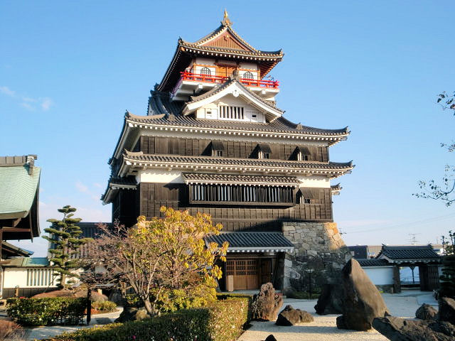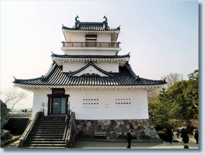 関ヶ原の合戦で軍功を立てた井伊直正が徳川家康から石田光成の佐和山城を賜りましたが、直正は中世的な古い縄張りや三成の居城であったことを嫌い別の場所に居城を移す事にしました。しかし直正は古傷が癒えず1602年(慶長7年)に死去した。家督を継いだ直継が幼いため家老の木俣守勝が先代の遺志を継いで琵琶湖に浮かぶ彦根山に彦根城の築城を開始しました。1606年に一部の工事が完了し、その後彦根城としてすべての工事が完了したのは1622年の事でした。井伊氏は1633年(寛永10年)には徳川幕府下の譜代大名の中では最高となる35万石を得るに至りました。 また15代藩主井伊直弼は、幕末期の江戸幕府に於いて大老に抜擢されるまでになり、日米修好通商条約に調印し日本の開国近代化を断行しました。その独断政権(安政の大獄)が国内の反対勢力に拍車を掛けあの有名な暗殺(桜田門の変)される運命になったのです。大河ドラマ「花の生涯」で井伊直弼の生涯を描いた作品は視聴率全話平均20.2%だったそうです。現在の人達はどう捉えているか分かりませんが、歴史には何が英雄で何が正義か判断は人其々の様です。お城の話から脱線しましたが、天守閣としては残存の天主で実戦的な城郭である。見どころは天守閣、彦根城博物館「玄宮園」、庭園です。アクセスはJR東海道本線「彦根駅」徒歩約10分
