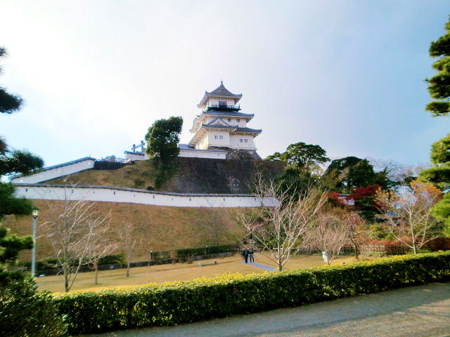 室町時代中期の文明(1469年 - 1487年)年間に守護大名・今川義忠が、重臣の朝比奈泰煕に命じて築城したお城と伝えられています。駿河守護の今川氏が武田軍に追われ逃げ延びた所でもあり、主君を守る朝比奈氏もよく戦い容易に落城しませんでした。しかし多勢に無勢でもあり和議で主君を守りました。朝比奈氏は開城後主君今川氏と共に相模国の小田原城へ退去し、掛川城には城代として家康の重臣・石川家成・康通親子が入城しました。その後豊臣政権下で山内一豊の居城となり、大改築を行い1590年〜1600年にも及びました。そして掛川の城下町は大いに繁栄することになります。山内一豊は土佐に転封となり、徳川政権下が支配する多くの城主が入城する中、1745年に太田道灌の子孫太田資俊が入城しその後明治時代まで治めることになります。掛川城に関ヶ原の戦以前に密書が入ったという逸話があり、一豊の妻が家康方に味方するよう進言したと云われています。見どころは二の丸御殿、春の桜、秋の紅葉、城下町の歩道橋から眺める天守閣。アクセスはJR東海道本線、東海道新幹線「掛川駅」北口から北へ徒歩約7分