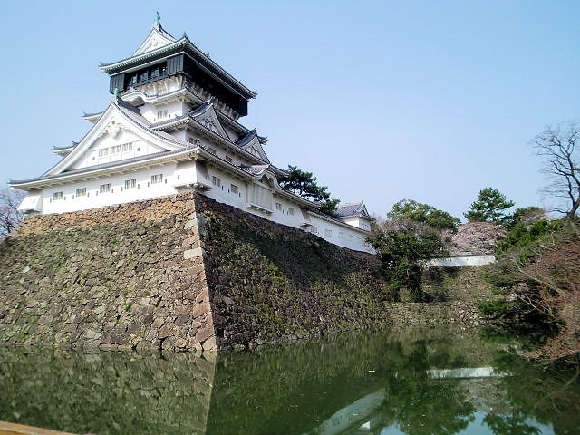 九州に上陸と言う事で、まず玄関口である小倉城を訪問しました。名古屋から夜行バスで約9時間でしたが、残念ながらよく眠れませんでした。前置きは兎も角、3月19日で名古屋では全くだった桜が既に満開で実に良くお城に似合っていました。小倉城の歴史ですが戦国末期(1569)中国地方の毛利氏が現在の地に城を築いた事から始まります。その後関ヶ原の合戦で功を得た細川忠興によって本格的に築城(1602)されました。忠興は城下町の繁栄のため商工業保護政策の実施や外国との貿易も盛んに取り組んだそうです。細川氏が熊本に転封後は播磨国明石から姻戚関係である小笠原忠真が入城(1632)し、九州諸大名監視という特命を将軍家光から受けていました。小笠原家は版籍奉還まで237余年に亘り家系を守りました。幕末時の長州征伐に加担し一時は失脚したものの、長州藩との講和で小笠原忠忱が家督を相続します。小倉城所縁の人、細川忠興の妻玉(ガラシャ)はキリスト信者のため非業の死を遂げ、小倉藩剣術指南役だった佐々木小次郎は巌流島にて宮本武蔵と決闘をしました。また、勝者宮本武蔵も小笠原藩との関係から小倉で数年過ごしています。因みに巌流島は下関に近い関門海峡に浮かぶ小島で、観光地として唐戸からフェリーが出ています。見どころは天守閣からの展望、資料館、小倉城庭園です。アクセスはJR「小倉駅」から徒歩約20分、JR西小倉駅より徒歩約10分