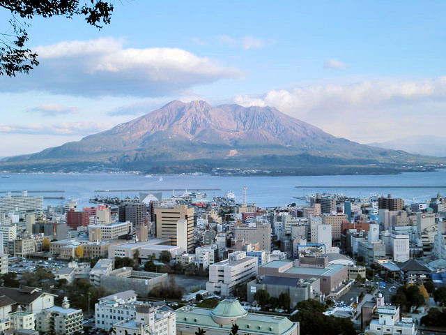 2012/12/10〜3日間の鹿児島に訪問しました。もともと鹿児島行きは息子の希望で桜島やパワースポットに一度行きたいという事で便乗しました。旅費は私の提供でしたが・・・。それでも私も鹿児島が初めてでしたし、名城100選に鹿児島城(別名鶴丸城)がありますので行く事にしました。駅に着いたのが13時でしたので早速、桜島がよく見える城山展望台に向かいました。鹿児島の中心部と桜島が一望できる場所で東洋のナポリと称されています。駅からタクシーにて西郷隆盛銅像前で下車し、徒歩で登頂しました。約15分で登れます。天気にも恵まれ流石にいい眺めでした。サプライズ日本に名所は沢山ありますが見応えありました。