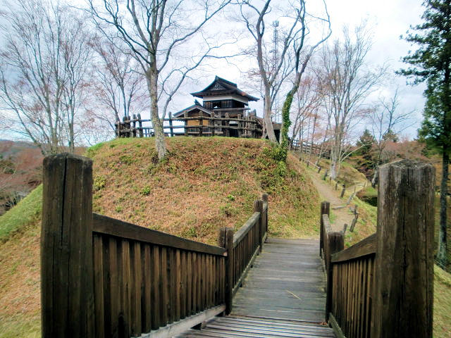 挙母城(ころも城)を後にして約40分で足助城(あすけ城)に着きました。昼時なのか拝観者は3人しかいませんでした。足助城は、愛知県東加茂郡足助町足助字真弓での所在地として長かったのですが2005年の市町村合併で新たに豊田市に加わることになりました。紅葉の観光地としても有名で香嵐渓(こうらんけい)と呼ばれています。足助城は標高301mの真弓山の山頂を本丸としており、四方に張り出した尾根を利用した連郭式の山城です。足助城は別名を真弓山城(まゆみ山城)とも呼びますが、他に「松山城」「足助松山城」とも呼ばれていました。鎌倉時代が背景で足助氏が築いた「足助七屋敷」の一つとも伝えられています。発掘調査での遺構からは15世紀以降に鈴木氏が築城した跡と考えられています。鈴木氏は、忠親、重政、重直、信重、康重と五代わたり続きます。16世紀に入ってから岡崎の松平氏との間で従属離反を繰り返しますが、永禄7年(1564)以降は松平氏のもとで高天神城の戦いなどに武勲をあげています。天正18年(1590)5代目康重の時、徳川家康に従って関東国に入国した為足助城は廃城の道を辿りました。沿革の中でふれていませんが、元亀2年(1571)に甲州の武田信玄2万5千の兵に攻められ一時は武田方の下条伊豆守信氏を城代としました。信玄没後家康の長男の岡崎三郎信康が武田勢を追い払い鈴木氏を復活させました。余談ですがお城の話で詳細や知らない名称そして人物の登場では興味が湧かないのが現実でが、築城者の人脈や名勝負などが出てくると興味が出たりする事もあると思い少しふれてみました。登城はかなり勾配がきつい坂道です。道路の幅3.5mで対向車に十分注意しながら麓から車で約10分、徒歩約30分。見どころは本丸、高櫓、物見矢倉。アクセスは名鉄「浄水駅」より、とよたおいでんバス「一の谷口」から徒歩約40分。猿投(さなげ)グリーンロード「力石」より153号線足助城まで約25分