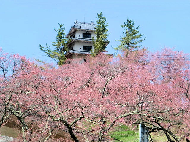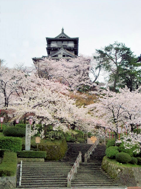 3/26鉄道を利用しての福井県は丸岡城を目指しました。朝から雨模様にも負けず傘を片手に我ながらよくやります。天気予報では台風なみの風と報ぜられていたので、道中十分警戒しながらの城巡りになりました。丸岡城は日本最古の天守閣現存なので非常に楽しみにしていました。やはり予想通り雲行きが悪くJR福井駅は既に雨でした。駅からは京福バスで約40分、一時の雨しのぎになりました。現地バス亭の傍には桜祭りと書かれた看板があり、そして城郭への階段が見えてきました。いよいよ待ちに待った瞬間です。うーん成程古そう!天守閣の階段もかなり急な造りでロープを蔦っての登りで、年配の方は少し大変です。え、「私」十分大丈夫?さて丸岡城は福井県坂井市丸岡町霞にあった城で、別名霞ヶ城とも呼ばれます。江戸時代には丸岡藩の藩庁でした。霞ヶ城の名称は幾つかの城にも類似があり、山形城や二本松城もそう呼ばれています。天正4年(1576)織田信長の家臣で越前のほぼ一帯を領していた柴田勝家の甥である勝豊(かつとよ)が築城し、その後居城だった豊原寺城(とよはらじ城)から移りました。織田信長から豊臣政権を経て関ヶ原の合戦以降に徳川家康の領地となり、丸岡藩として成立したのは寛永元年(1624)本多成重(ほんだなりしげ)が福井藩より独立し大名に列した時です。元禄8年(1695) 4代本多重益(しげます)の治世に丸岡藩でお家騒動が起こり、幕府の裁定により改易となりました。代わって有馬清純(きよすみ)が越後国糸魚川藩より5万石で入城し、以後は有馬氏丸岡藩6代の居城となり明治維新を迎えました。運よく桜も満開で良い時間を過ごせました。しかし帰路は予報通り強風によりJRの運行に支障をきたし、夜遅くの帰宅になりました。教訓天気予報を馬鹿にしてはいけません。見どころは何と言っても天守閣、歴史民俗資料館、丸岡公園。アクセスは北陸本線「福井駅」より京福バス「丸岡城」まで40分