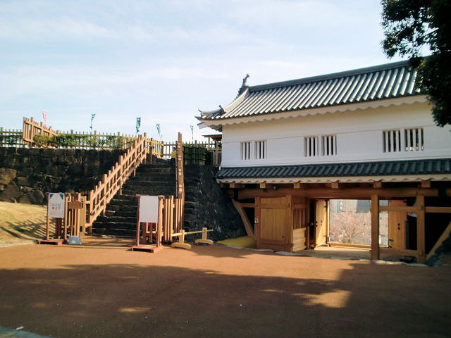 2013/04/09に東北在住の旧友と車で訪問する事になりました。33年ぶりに再開しての懐かしさと暇を持て余しての旅と云ったら失礼になりますが、何はともあれ協力して頂いたことに感謝しています。道は水郡線沿いに約3時間行程になりました。偕楽園の方がすっかり有名になっていますが、水戸城は鎌倉時代に馬場資幹(すけもと)が築城して以来、馬場氏が200年以上居城として来たお城です。しかし室町時代に江戸通房(えどみちふさ)に攻略され、更に天正18年(1590)には佐竹義宣(よしのぶ)が江戸氏を滅ぼし入城しました。これは佐竹氏が豊臣秀吉の小田原攻めに参陣し、北条方に付いた江戸氏を敗走させた出来事です。慶長5年(1600)関ヶ原の合戦に於いて佐竹氏は曖昧な態度を取ったため勝者である徳川家康に水戸より秋田に追放され、その後水戸城は徳川政権下で武田信吉(のぶよし)、徳川寄頼宣(よりのぶ)、徳川頼房(よりふさ)と城を継ぎ徳川御三家(尾張、紀伊、水戸)の水戸藩を盤石にしました。9代藩主徳川斉昭(なりあき)の時に藩士育成の藩校として弘道館を開館し、さらに日本三大名庭園(後楽園、兼六園、偕楽園)である偕楽園を城の西に開きました。幕末期には水戸藩の内紛(天狗党と保守党)等によって多くの建物が焼失し、現在水戸城で残っている僅かな薬医門(橋詰門)と藩校や土塁と空堀がやや静寂な情観を漂わしています。ご存知の水戸黄門こと水戸光圀公は徳川頼房の子として2代目藩主でした。見どころは弘道館、橋詰門(画像上)、隣接する梅花期の偕楽園、但し城跡としては橋詰門と空堀くらいで城郭らしき建造物等は殆ど残っていません。アクセスはJR常磐線「水戸駅」から徒歩約8分