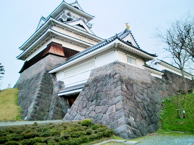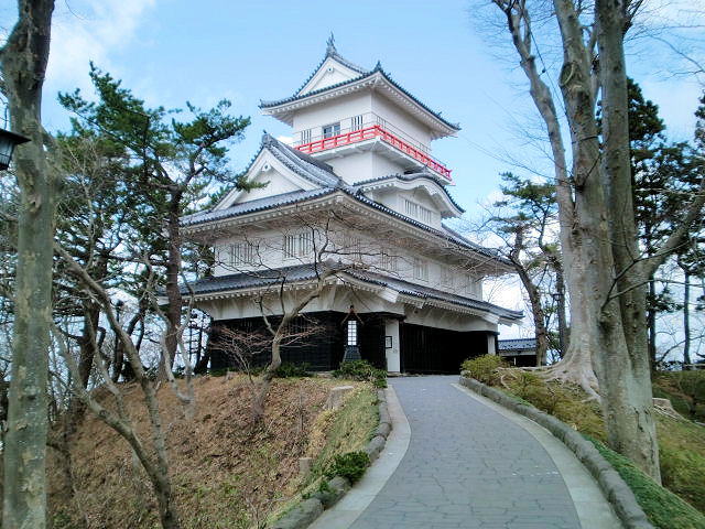 山形県最後に訪問した上山城(かみのやま城、別名月岡城)は100名城に登録されていない事もあり、後回しになってしまいましたが、なかなかどうして立派な天守を構えていました。上山城の歴史は上山に天童氏(最上氏庶流)の一門上山氏が城を持っていた事に始まり、1508年に伊達氏がこの城を攻め落とし城主上山義房(よしふさ)は滅亡しましたが、その子武衛義忠(ぶえいよしただ)が城を奪還しました。義忠によって改めて築城された平山城が現在の上山城です。以後城主は武衛義節、そしてその子上山満兼(みつかね)と継承しました。この頃天童氏は主家最上義光と次第に対立し、満兼も天童一門として義光に従う事を拒否し伊達氏とともに山形を攻めました。しかし1580年義光は里見民部(そとみみんぶ)を寝返らせて上山城を攻め落とし、城主満兼は討死し代わって里見民部が上山城主になりました。江戸初期に最上氏が改易された後は、没落した諸大名が3万石から4万石で入部し、城主を務める氏族がめまぐるしく変わりますが、上山藩自体は幕末まで存続しました。戊辰戦争では幕臣として奥羽越列藩同盟に参加するなど積極的に加勢したものの、北越戦争では劣勢となり降伏恭順(降伏し命令に従う意味)しました。そして最終的に統治することになった城主は藤井松平(まつだいら)です。余談になりますが、幕府から流罪となった「たくわん」で有名な沢庵和尚の流罪先となった上山城は、歌人でもあった沢庵和尚の所縁の地でもあります。見どころは模擬天守、月岡公園、郷土歴史資料館。アクセスはJR奥羽本線「かみのやま温泉駅」徒歩約10分