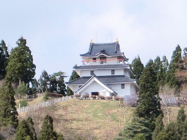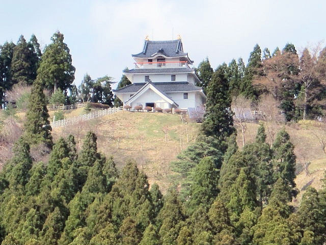 久保田城(秋田市)から青森県の弘前城を目指し、道中急ぐ中またまた思いがけない発見がありました。国道285号線男鹿半島(八郎潟)より大館市方向に入った所付近だと思いますが、北面の山頂にお城見つけ慌てて近くまで行きました。残念ながら後ろ髪を引かれる思いで写真を撮るだけに留めました。何故!と聞かれると、登頂するには弘前城でのスタンプ取得時間に間に合わなかったからです。五城目城跡(別名砂沢城)の詳細は五城目町の森山にあった安土桃山時代から江戸時代の初めにかけての山城(やまじろ)で、天正年間の安東氏(秋田氏)の内紛(湊合戦)後に五城目(五十目)地域を支配した藤原内記秀盛の居城となりました。藤原氏はこののち五十目氏を称するようになり、市や座を保護し五城目の基礎をつくった領主とされています。城跡には帯郭(郭)跡が残り、また発掘調査では整地や盛地跡など柵列跡が確認されたほか、森山の麓に城主の屋敷跡も確認されました。この城は秋田氏の常陸国宍戸(ひたち、現在の茨城県)への転封に伴い破却されました。本来の五城目城は天守がなかった様ですが、現在城跡のある森山中腹には模擬天守が建っており内部は森林資料館になっています。豆知識は五城目城周辺約8`以内に20以上の城跡があるそうです。見どころは模擬天守以外登頂出来なかった為不明。アクセスは秋田自動車道、五城目八郎潟ICより約5分