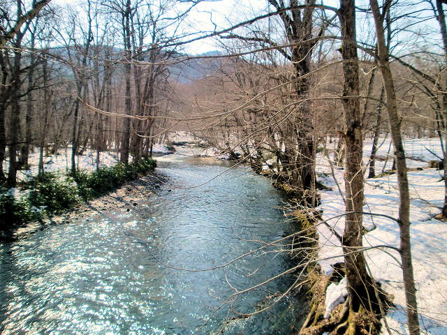 先日は弘前城になんと15分前滑り込みし、スタンプをゲットしました。もし五城目城を登頂していれば間違いなく涙涙だったでしょう。まあ東北は広いので時間も限られているのでいたしかたありません。2013/04/14は青森八戸市の根城に向います。昨日は青森市内に宿を取ったので、多少時間の余裕がありそうなので少し寄り道をしていく事にしました。行先は十和田湖を源にした奥入瀬川渓流(おいらせ川渓流)ですが、途中思いもしない城跡の道路標識を見つけ、またまた寄り道の寄り道をする事にしました。標識より僅か10分くらいで目的地に着き我ながらの調査開始です。七戸城跡の碑を見つけ漸く分かりました。歴史は南北朝時代の南部政長(なんぶまさなが)の築城と伝えられていますが、14世紀後半の南部政光(まさみつ)が築城されたと考えられています。天正19年(1591)城主七戸家国は九戸政実(くのへまさざね)の乱に加担して滅び、翌天正20年(1592年)「諸城破却書上」により破却されていましが、津軽に対する配慮から五戸町浅水城主南直勝に名跡を継がせ、その子七戸隼人直時を七戸2000石の城主としました。寛文4年に、27代南部利直の5男重信(七戸城に封じられていた)が南部本家29代を継いだため、藩の直轄地となりました。見るところ跡地は石碑だけで他は残雪の残る公園として整地されていました。七戸城を後に今度は、本来の寄り道奥入瀬へと向かいました。まだ側道に雪が積った清流の川沿いを十和田湖方向(奥入瀬はこの登り方向のドライブがお勧めです)に走行していると温泉郷が疎らに見え隠れし、そのうち渓流の流れが見えて来ました。残雪景色なのでサプライズとまでは言えませんでしたが、紅葉季はきっと素晴らし景観が見られると思います。見どころは秋の七戸城跡石碑、十和田湖周辺、温泉郷、八甲田山系。アクセスは青森市より国道4号線で南下して陸羽街道か国道394号線