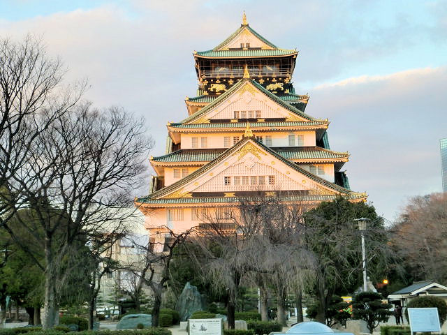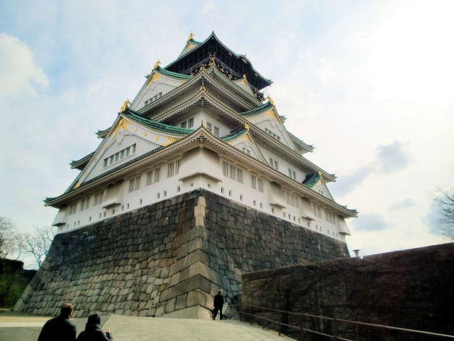 大阪府堺市に生まれ25年間ずっと慣れ親しんできたお城ですが、縁あって愛知県に引っ越し37年経った今、改めてお城巡りで大阪城を訪問するとは夢にも思いませんでした。2013/01/11にも奈良の高取城の帰りに寄ったのですが、残念ながら時間に間に合わずに窓口で断られてしまいました。そう言う訳で本日(1/23)は今月2回目の訪問になりますが、時間もたっぷりあり大丈夫です。大阪城は「夢は今も首都へ」の思いと同様に天下布武の織田信長が立案しましたが、志半ばで破れ後継者として豊臣秀吉が天正11年(1583)に築城を開始しました。しかしその後の秀吉も完成を待たず死去しの慶長4年(1599)頃に完成しました。その後秀頼が城主となりますが、関ヶ原の戦い、冬の陣、夏の陣を経て大阪城は落城しました。徳川家康が天下人になってからは幕府の直轄領となり、2代将軍秀忠、3代将軍家光と再築工事に携わり完成させました。特に豊臣時代の終わりを誇示する様に、豊臣秀吉の痕跡を一切末梢したのです。そんなことを知ってか大阪人は未だに太閤さんの城と情深く、今でも豊臣氏が徳川家康によって滅亡に追い込まれたと憐れむ風土があります。因みに豊臣秀吉の居城は京都の聚楽第と、伏見城でした。見どころは天守閣、大阪城公園、内堀石垣。アクセスはJR大阪環状線「森ノ宮」駅もしくは「大阪城公園」駅から徒歩約15分