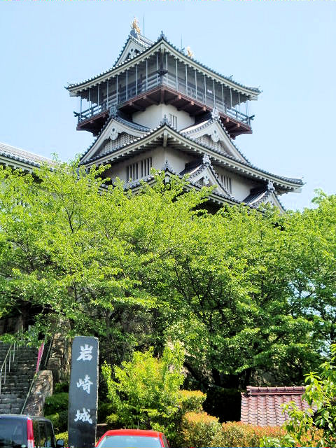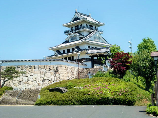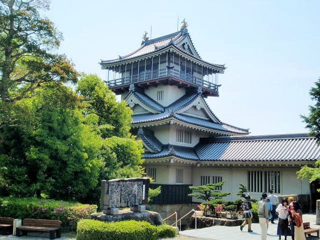 愛知県長久手市在住の私にとって、一番近い城と言えば岩崎城です。区域こそ違いますが岩崎城は日進市で、時間にして車で10分くらいの所にあります。天守閣も復元されてこぢんまりとした模擬城ですが、日曜祝日には老若男女問わずハイキングなどで、四季の樹木など堪能できる憩いの場所になっています。また二ノ丸庭園の脇には水琴窟があり、訪れる人へ心地よい音色を奏でているようにみえます。岩崎城の歴史は、享禄二年(1529)頃に、織田信秀(信長の父)によって築かれた城です。後に松平氏が岩崎城を奪いましたが、天文四年に起こった「守山崩れ」の後、丹羽氏が本郷城より入城し、以来丹羽氏約60年の拠点となりました。天正十二年(1584)の小牧・長久手の合戦時、秀吉方の武将の池田恒興(池田つねおき)が、家康の本拠で三河の岡崎城を攻撃するために小牧を出発し、この岩崎の近くを通過しようとしました。しかし家康方であった守将の丹羽氏重(丹羽うじしげ)は、1.5万(諸説あり)の池田恒興軍に対し約300の兵で岩崎城から出撃し戦いを挑みましたが、丹羽軍は全滅し岩崎城も落城しました。しかしこれが時間稼ぎとなり池田軍は家康軍の追撃を受け壊滅し、池田恒興、池田元助(恒興の嫡男)、森長可((森ながよし)森蘭丸の兄)が戦死してしまいました。見どころは天守閣、岩崎城歴史記念館、岩崎城址公園。アクセスは地下鉄「星ヶ丘駅」から名鉄バス「長久手車庫」「五色園」行き「岩崎おんたけ口」下車より徒歩約3分。地下鉄「赤池駅」から日進市内巡回バスの「くるりんばす」にて「御岳口」下車より徒歩約3分