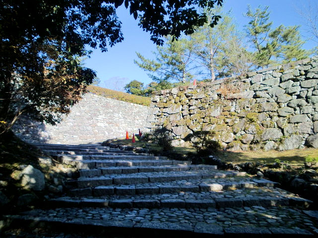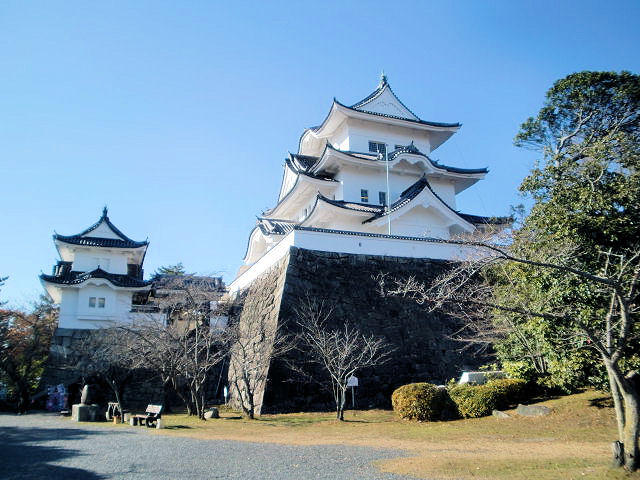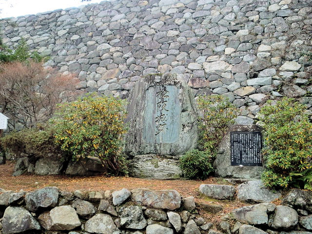 2012/12/03まだ初めたばかりの百名城ですが、やはり近いところから周るのが順当と思い、東海3県中の甲賀と共に忍者で知名度のある三重県は伊賀上野城から訪問します。三重県はJRも使えますが近鉄電車に乗り慣れているせいか、つい使ってしまいます。伊賀神戸(かんべ)から伊賀鉄道に乗り継ぎを経て2時間位で上野駅(JRの伊賀上野駅とは異)に着きます。駅から歩いて5分くらいの道程なので、さほどの負担はないと思います。天正7年(1579)9月伊勢国の織田信雄(信長の二男)が8千の兵を率いて伊賀平定に乗り出しますが、伊賀衆(伊賀忍者)の前に一度は敗退しますが天正9年(1581)9月織田信長の援軍をうけ4万の兵で伊賀国を平定し、織田信雄の家臣である滝川雄利(かつとし)を伊賀国守護としました。滝川雄利は大寺院、丸山城、滝川氏城を改修し伊賀国を支配しました。本能寺の変(信長の死)の後の豊臣政権となると、天正12年(1584)10月脇坂安治(やすはる)が伊賀国守護となりますが、天正13年(1585)5月には摂津国に移封されました。これにより同年8月 大和郡山城から移ってきたのが羽柴の姓を賜った筒井定次で、天正伊賀の乱で焼け落ちた平楽寺、仁木古館跡に築城することにしたのが伊賀上野城です。徳川時代には築城名手の藤堂高虎(とうどうたかとら)が入城し、大阪城攻めの拠点として大改修を進めた。豊臣氏が滅亡すると高虎は津城(三重県津市)に移り城代を弟の藤堂高清にします。藤堂高清の死後は藤堂元則が城代になり、文政8年(1825)藤堂高猷(たかゆき)が最後の城主となるまで世襲しました。見どころは高石垣の天守、上野公園、俳聖殿。アクセスはJR関西本線「伊賀上野」経由で伊賀鉄道「上野市」駅より徒歩約5分。近鉄大阪線「伊賀神戸」駅経由で伊賀鉄道「上野市」駅より徒歩約5分