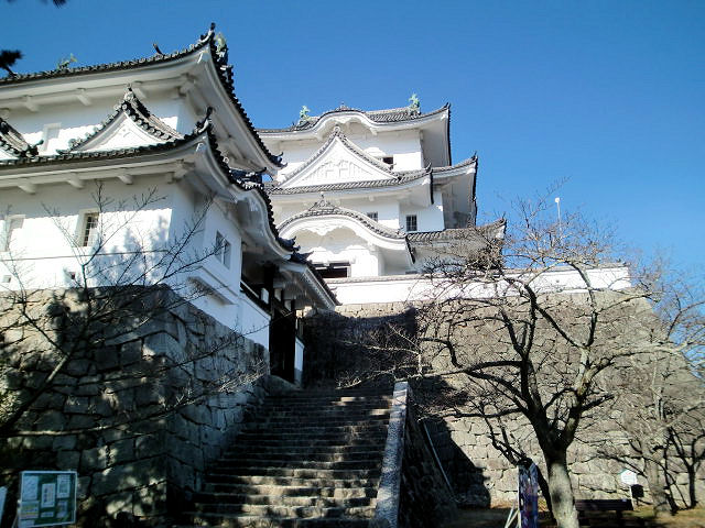 百名城の登録が一県に一城しかないと効率が悪いのですが、考えによっては地図上の消し込みが早く終わると言う事でもあります。まあ、別に焦る事もなく道は長いので挫折しないよう頑張ります。今回(2012/12/20)は前述しました通り目的地は和歌山県唯一のお城に向かいます。名古屋から近鉄特急で難波(なんば)駅まで約2時間、虹の街(難波の地下街)を通り抜け南海電鉄難波駅より約1時間20分の和歌山へ直行です。駅からタクシー利用で「一の橋大手門」から入城した和歌山城の歴史は徳川御三家(尾州、水戸)として由緒のあるお城として長い歴史がありますが、天正13年(1585)に紀州を平定した豊臣秀吉が異父弟の秀長に築城させたのが始まりです。担当したのが築城の名人の藤堂高虎(たかとら)で、本丸と一の丸を造りました。そして秀長は桑山重晴に3万石を与え城代(留守居役)に据え、その重晴は本丸を中心に手直しを行いました。慶長元年(1596)重晴の隠居に伴い孫の一晴が城代を継ぎました。慶長5年(1600)関ヶ原の戦いの後に東軍に属した桑山一晴は正式に紀伊和歌山に2万石を与えられましたが、同じく東軍に属した浅野幸長(よしなが)が軍功により37万6千石を与えられ紀州藩主となりました。その後元和5年(1619)浅野氏は改易となった福島正則の広島藩に加増転封となり、それに伴い徳川家康の十男頼宣(よりのぶ)が55万5千石で入城し、南海の鎮(しずめ)と呼ばれ徳川御三家である紀州徳川家が成立しました。頼宣は元和7年(1621)より城の改修と城下町の拡張を開始し、天守は大天守と小天守が連結式に建てられ、更に天守群と2棟の櫓群が渡櫓によって連ねられた連立式と呼ばれる城となりました。これは姫路城と松山城に並ぶ日本三大連立式平山城の一つに数えられています。因みに紀州家は徳川時代に征夷大将軍を輩出した唯一の家です。見どころは連立平山城、天守資料館、季節折々の樹木。アクセスは南海本線「和歌山市」駅より徒歩約10分