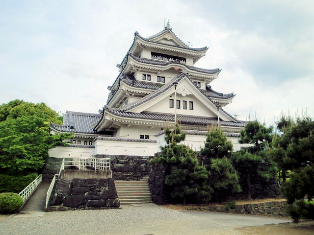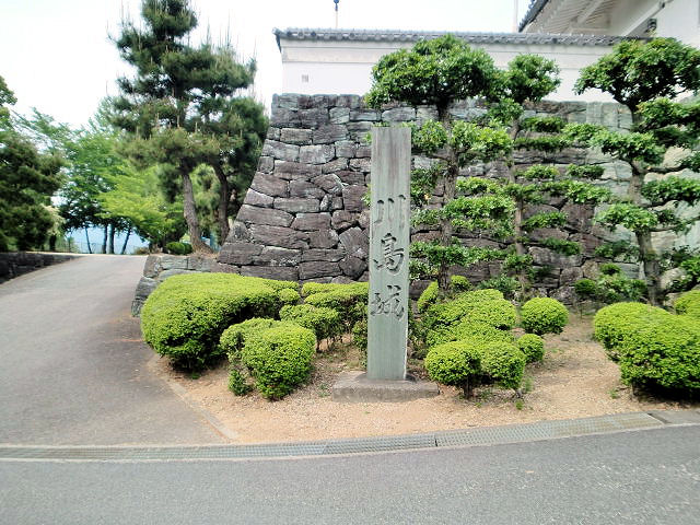 2013/05/15愛媛県の川之江城から徳島県へ移動です。川之江町は香川県も含む分岐点なので、ものの数分で県境です。等と言っている間に徳島自動車道に入りましたが時間に余裕があるので、一部だけ高速を使い後は一般道のR192を使います。しかし平日の一般道を甘く見たのか、結構渋滞で結局目的地に着いたのは15時過ぎになってしまいました。まあ何とか着いたので結果オーライです。川島城の所在地は徳島県吉野川市川島町にあります。早速入館し、受付を済まそうと思いきや誰も居らず、「ご自由に」との張り紙と資料が置いてありましたので頂いてきました。川島城の歴史は1572年に川島惟忠(川島これただ)が三好氏の家臣であった篠原長房(篠原ながふさ)を滅ぼした事で、その功績によりこの地を与えられ、長房の上桜城に代わって城を築きました。その後の1585年には蜂須賀家政の家臣である林能勝(林よしかつ)が城主となります。しかし一国一城令により1638年に廃城となり、その跡には徳島藩の奉行所が設置され明治になるまで存続しました。見どころは春季の桜、模擬天守資料館。アクセスはJR徳島線「阿波川島」駅より徒歩約10分