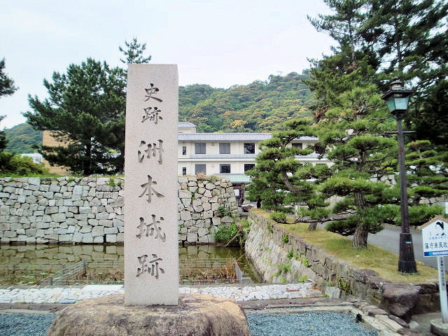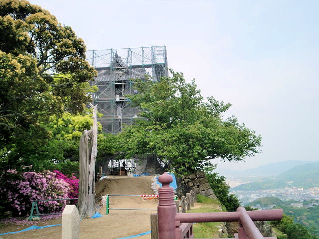 2013/05/16撫養城で今回の四国の旅が終了になりますが、決して全ての城跡と歴史に纏わる土地を回った訳ではありません。また新たに目標を定め訪問したいと思います。それでは、四国を後に鳴門北ICから淡路島の洲本城を目指します。鳴門海峡を渡る鳴門大橋での景色は絶景で、うず潮など暫く見ていたいのですが生憎止める所がないので残念です。まあ一瞬でも目に焼き付きましたから、よしとしましょう。勿論撮影は無理でした。淡路島に入ってまもなく洲本ICです。ICを下車して洲本温泉街の方角に向い、約8分で洲本城の駐車場に到着しました。あとは徒歩で約10分のはずですが、行けども行けども天守閣が見えて来ません。あるのは復旧工事の足場とそれを覆うテントのようなものしか見当たりません。実は天守閣一階部分のコンクリートに剥離箇所が確認された事で修復工事(2011/03〜)を現在行っているそうです。残念ながら天守閣を拝観する事は出来ませんでした。沿革は大永6年(1526)三好氏重臣の安宅治興(あたぎはるおき)が築城しました。治興の後は養子の安宅冬康(三好長慶の弟)、冬康死後は長男信康、二男清康へ受け継がれ、天正9年(1581)の淡路討伐で総大将羽柴秀吉に落城し、城は仙石秀久(せんごく秀久)に与えられました。江戸時代になり姫路城主の池田輝政の三男忠雄(ただかつ)が領主になりましたが城は廃城となり、岩屋城から次に由良成山城を居城としました。これは関ヶ原の戦い以降も豊臣方大名の動きを牽制する為に、徳川家と縁戚関係にある池田氏(忠雄の正室は徳川家康の孫)に播磨灘と大坂湾一帯を防衛させました。大坂夏の陣のあと徳島藩の蜂須賀氏の所領となり、筆頭家老の稲田氏一族が由良城の城代となりますが、交通の便が悪いなどの理由から1631年から1635年にかけて由良城を廃して洲本城に再び本拠を移しました。この移転は城下町ごとの大移転であったため俗に「由良引け(ゆらびけ)」と呼ばれています。見どころは天守台の三熊山からの眺望、麓の淡路文化資料館。アクセスは高速バスの洲本バスセンター行き終点より麓まで徒歩約20分、頂上の城まで徒歩約60分