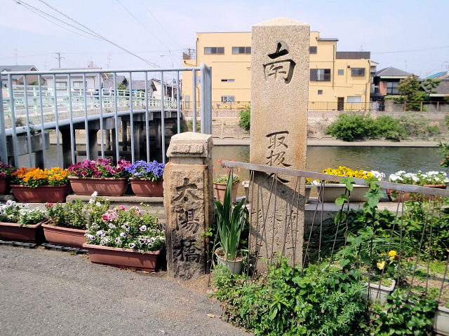 2013/04/14に青森県の根城(八戸市)を訪問した時に紹介させて頂いた、南朝北畠顕家(きたばたけあきいえ)と南部師行が、北朝の高師直と戦った場所にこんなに早く訪れるとは思いませんでした。実は、2013/05/16明石城を経て名神・阪神の高速道路を使い、名古屋に帰るつもりでしたが、大阪方面を走行中ふと懐かしさを感じ、気の向くまま堺市に入り祖父が埋葬されている大安寺に献花を供えに行きました。もう参拝する人も高齢な為、足を踏み入れてない状態でした。私ごとですがお城跡巡りもいいけど年に一回は先祖供養で心身共に洗濯せにゃいかんですね。お墓参りを終えたその足で石津に向い、南北朝の戦いの舞台となった太陽橋付近を拝観しました。太陽橋とは既述の「根城」でも紹介させて頂いていますが、堺市西区の石津川に架けられた紀州街道の橋です。余談ですが、この地は東北地方のお城巡りの際33年ぶりで再会した旧友の育った故郷でもあり、敢えていえば偶然根城跡(青森県八戸市)の歴史絡みで記上したことが本当になった訳です。勿論私も少なからず、彼と同じ中学時代を過ごした想い出の場所でもあります。本題の「石津の戦い」は、南北朝時代の延元3年/暦応元年5月22日(1338