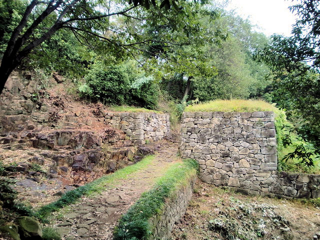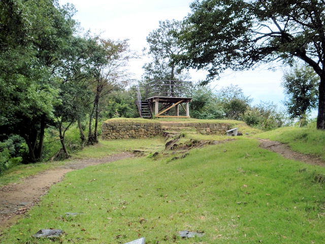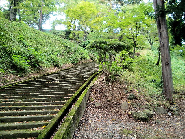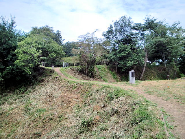 2013/10/02 残暑のきびしい9月も過ぎ漸く秋らしくなった日、久しぶりの旅行に胸をときめかせながら、夜半に旅支度を整え1:30頃に出発です。まるで夜逃げ見たい!しかし今回は友人の住む福島県を目指すのでかなり長旅です。そして車での移動なので混雑の少ない時間帯とルートを選択しました。途中の寄り道は当然あるでしょうし、小休止を取りながら時間を有効に使います。愛知県長久手ICより中央自動車道に入り更埴(こうしょく)JCTを経て上信越自動車道・関越自動車道と乗り継ぎ、8:40頃前橋ICを下車します。最初の脱線コースは高崎市箕郷町(みのさと町)にある箕輪城です。言い忘れましたが、行程時間は約7時間位で、途中PAで仮眠の小休止を取ったりしたので眠気もなく快適な朝を迎えました。箕輪城に到着したのは9時頃です。箕輪城は日本百名城に記載されていることもあり、かなり広大な堀と曲輪跡などを見ることができます。沿革の箕輪城は大永6年(1526(1512と言う説も有り))長野業尚(ながのなりひさ)によって築かれた丘城です。業政、業盛と受け継がれ、業盛の代の永禄9年(1566)に甲斐の武田信玄の攻撃を受け落城、そして長野氏は滅亡しました。その後武田家の家臣の内藤昌豊(まさとよ)が城主として入りますが、武田家滅亡後は織田信長の家臣の滝川一益(かずます)の居城となり、本能寺の変で信長が死ぬと小田原の北条氏が支配することになりました。そして北条氏滅亡後に関東に入った徳川家康は徳川四天王の一人の井伊直政を入城させました。慶長3年(1598)になると直政は南方の和田宿に新たな城(高崎城)を築き移転するとともに、和田宿を高崎と改名し箕輪城は72年の歴史を終えました。豆知識として上泉信綱(剣聖)は上州の戦国武将の長野業正の家臣として武田信玄や北条氏康と戦い、その功績から「長野十六槍」と賞賛され、また「上州一槍」の感状を長野業盛より贈られたと言います。武田信玄により長野家の居城である箕輪城が落城すると、秀綱(信綱)の武勇を惜しんだ信玄から自分に仕えるように勧められるも、兵法修行を理由に固辞しました。信玄は己の名から「信」の一字を秀綱に与え以降「信綱」と改名したという逸話が「甲陽軍鑑」に記されています。アクセスはJR信越本線「高崎」駅から群馬バス「箕郷本町」下車より徒歩約20分。見どころは主な遺構(堀・石垣・土塁)