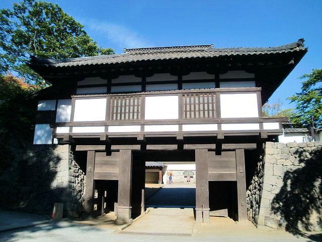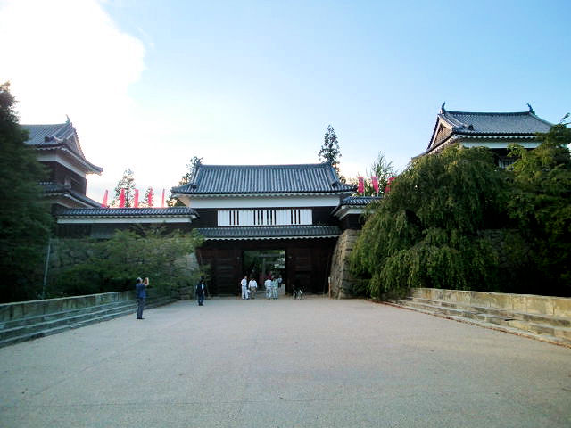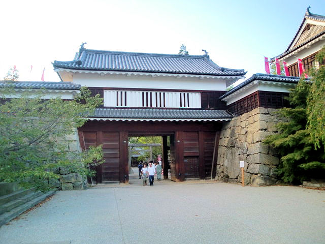 2013/10/07現在15時を少し回ったところで小諸城に別れを告げ、一路本日最終訪問地の上田城へ行くことにします。閉館時間は17時なので、取り敢えず急ぎます。高速道を使い上田菅平ICを経由して上田城に15時50分に到着。駐車場は一番近い鳥居の中を利用させて頂きました。上田城の櫓門を潜り南櫓・北櫓に歴史資料等が拝観できるよう陳列されています。敷地内の市立博物館や山本鼎(山本かなえ)記念館も見学コースとなっています。また現存の櫓のうち昔の姿をとどめているのは西櫓です。上田城跡(上田城跡公園)は敷地が余り広くないので城下町や観光名所をゆっくり楽しむことができます。因みに六文銭は真田家の旗印(後に家紋となる)として有名です。沿革の上田城は甲斐の武田氏の旧臣だった真田昌幸により、天正11年(1583)に築城された平城です。また真田昌幸が二度にわたって徳川軍の攻撃を撃退した上田合戦が行われた事で有名です。第二次上田合戦の後、関ヶ原の合戦おいて真田昌幸と信繁(幸村)が属した西軍が負けたため、上田城は徳川軍に徹底的に破却され堀も埋められました。そして江戸時代には上田藩の藩庁が置かれ、真田氏が信濃国松代へ転封された後に仙石氏が入城し、破却された上田城を現在のような姿に再建しました。宝永3年(1706)には仙石氏から松平氏に替わり、上田在城は明治維新まで及びました。アクセスはJR長野新幹線「上田」駅から徒歩約10分。見どころは上田城公園の千本桜、上田城櫓、博物館