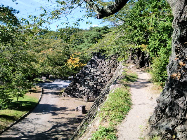 2013/10/07二本松を去る日が来ました。あっという間の5日間でしたが、また来年への思いを目標にすれば楽しみも増えるでしょう。さて帰りは一般道でゆったりのんびり帰るつもりでしたが、矢板から高速を使用しました。理由は日本百名城の小諸城に寄りたくなった為で、早朝8時頃出発したにも拘わらず矢板まで4時間も掛り、さすがにこれではゆったり過ぎです。ともあれ高速を使えば小諸まで2時間程で行けるでしょう。小諸に着いたのは14時過ぎでした。早速小諸城跡(別名懐古園)に足を運ぶことにしました。城は正面からは平城(門に向ってやや下り)ですが、反対側は断崖絶壁の山城となって城としては珍しい「背水の陣」的形態となっています。また断崖からは千曲川一帯が遠望でき「小諸なる古城のほとり・・・」と唄った島崎藤村の旅情の情景がそこにあります。懐古園内は城跡だけではなく児童遊園地の動物園があり家族連れも楽しめる施設になっています。観光客が求める期待は様々ですが城跡だけの景観としてはやや寂しいかもしれません。しかし懐古園の歴史を背景にその雰囲気や人物を彩れば景観がよく見えてくるのも確かな事かもしれません。まあ、私が云うまでもなく一人ひとりの感性によって楽しみ方がいろいろあるということです。沿革は「源平盛衰記」や「平家物語」に登場する小室太郎光兼が現城址の東側に館を築きましたが、その後大井光忠が小室氏の勢力を抑えて鍋蓋城(なべぶた城)を築きその子光為がさらに出城として乙女城(別名白鶴城)を構えました。しかし武田信玄によって落城します。信玄はこの地に新たな城の酔月城を山本勘助と馬場信房に命じて造らせました。現在の小諸城(慶長17年1612年)と呼ばれる基礎を築いたのは藩主仙石秀久(せんごくひでひさ)です。その後六氏の城主と牧野家が入り十代に及びました。明治4年(1871)の廃藩置県で城としての役割を終え明治13年(1880)には懐古園と呼ぶようになりました。豆知識は島崎藤村が小諸義塾時代に講師として教鞭をとる傍ら小諸で過した7年間に「雲」「千曲川のスケッチ」「旧主人」「落梅集」に収められた冒頭詩の「千曲川旅情」は有名で、また大作「破戒」等が起稿されました。懐古園では藤村以外の歌人碑も見られます。アクセスはJR小海線及びしなの鉄道「小諸」駅から徒歩約3分。見どころは三の門、大手門、懐古園、千曲川景観