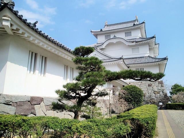 2013/03/17佐倉城跡を後にして房総半島の南下しつつ西南に位置する大多喜城を目指すことにしました。千葉県は30年前に浦安に来た程度で全く知らない土地なので新鮮味があって興味津々です。南下してから2時間程度で目的地に到着しました。大多喜城は平山城なので山城に比べる比較的登り易く、また成りは小規模でも復元された天守が存在するので城好きの人には感動ものでしょう。何故なら千葉県にお城あるの?と云う人が殆どで、期待はしていません。だから喜びもひとしおでしょう。沿革は大永元年(1521)に真里谷信清(まりやのぶきよ)が「小田喜城」として築いたのがはじまりとされています。天文13年(1544)に、里見氏の武将正木時茂によって真里谷氏は城を奪われ、以後時茂、信茂、憲時(のりとき)の3代に渡って正木氏が支配して、上総国(古名かずさ国)東部支配の拠点とされました。しかし天正9年(1581)に里見義頼(よりよし)との内紛によって憲時が殺害されると、同城には里見氏の代官が派遣されたようです。天正18年(1590)里見氏が惣無事令(そうぶ辞令、私闘を禁じた令)違反を理由に上総国は没収され、徳川家康に与えられると、家康配下の勇将の本多忠勝が城主となり大多喜藩10万石が成立しました。当地ではこの本多忠勝を大河ドラマへの誘致運動として幟等を揚げて取り組んでいます。余談ですが昨年訪問した月山富田城跡(島根県)でも山中鹿之助の誘致の幟を見た覚えがあります。アクセスは「いすみ鉄道」いすみ線「大多喜」駅徒歩約15分。見どころは復元天守と博物館