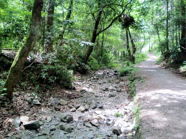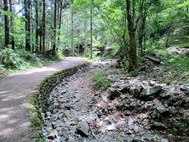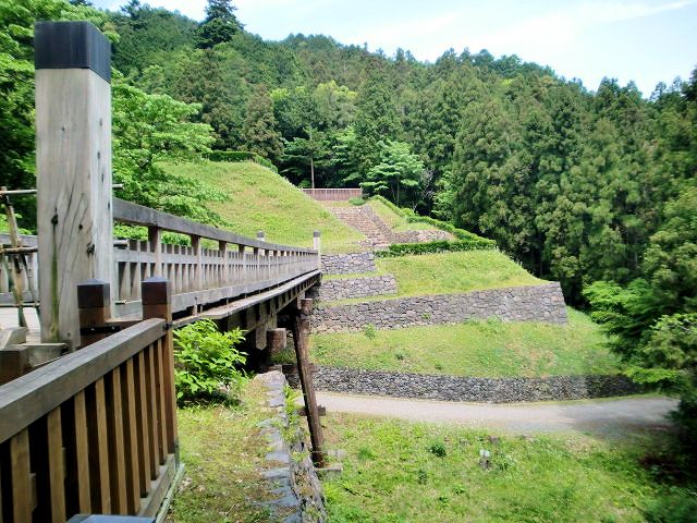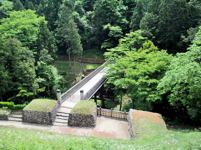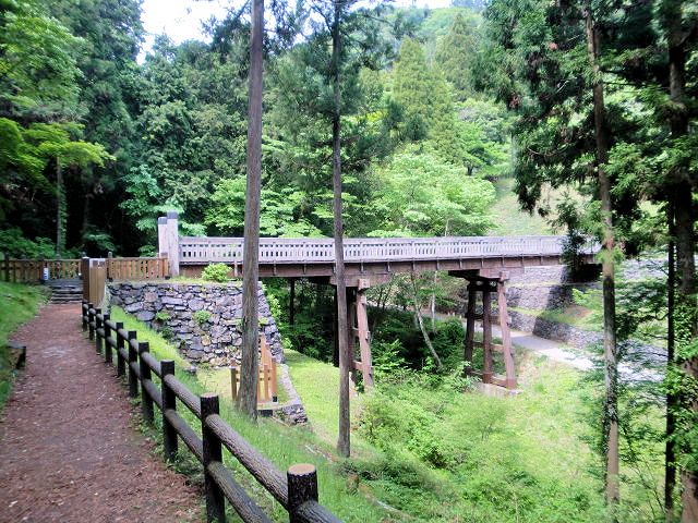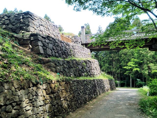 2014/05/14早朝より2ケ月ぶりに関東へ足を運びました。目的地は東京都ですが、どちらかと言えば、山梨県と神奈川県の県境に近いかもしれません。起床は朝4時と少し余裕を持って、出発する事にしました。長久手IC〜八王子西ICまで約330q4時間と少々の行程ですが、途中に休憩をいれても十分時間があります。なんて高を括っていたものの八王子西ICに着いたのは、9時半と大幅に遅れ気味で、結局八王子城跡に到達したのは10時でした。無料駐車場から7分位の所に八王子城跡案内所があり、ボランティアの方が数名みえました。勿論、目的のスタンプは早々にゲットです。さて、案内では観光スポットが2ヶ所に別れていて城跡のある山頂への登城、いまひとつは、心霊スポットとして噂になっている御主殿の滝です。先ずは、滝から行って見ることにしました。道なりに川の側溝がありますが、水はこの日殆ど流れておらず川底の石が露わな状態になっていました。しばらく風景に浸っていると滝壺への登り口が見えてきました。傍には石碑があり主殿の滝と彫られ、やはり滝はじょうろで流した程度の水量です。何の変哲もないところですが、曰くのある所なので霊感のあるなしに拘わらず何かが見えるかもしれません。もう一か所は山道を凡そ30分位登った場所に城の本丸跡地等がありますが、城跡としては少し満足感が得られませんでした。沿革は北条氏康の三男の氏照が元亀2年(1571)頃より築城し、天正15年(1587)頃に本拠としていました。 氏照は当初大石氏の滝山城に拠っていましたが、小田原攻撃に向かう甲斐国(現在の山梨県)の武田信玄軍に攻められた際、滝山城に防衛の限界を感じ織田信長が築城した安土城を参考に石垣で固めた山城構築とし本拠を滝山城からこの八王子城に移しました。滝山城は広大かつ多くの角馬出(防御の為に造られた独特の形状をした土塁)や内枡形(城内の出入り口)を備えた近世的な平山城でしたが、山城である八王子城に移ったことで氏照は時代に逆行したとも言われています。しかし、八王子城は一般的な山城のような尾根と堀切を利用した縦深防御に加えて、侵入してくる敵に対しいたる所から側射をかけられる仕組みになっていました。ところが八王子城は豊臣秀吉の軍勢で上杉景勝、前田利家、真田昌幸らの一万五千の軍に攻められ、当時の城主北条氏照と家臣の殆どが「小田原の合戦」に出ていた為、城内には僅かな家臣と婦女子しかいませんでした。領内から農民や職人、その家族らを呼び集め城内に動因しますが、一万五千の軍勢に対抗する術は無く僅か一日で八王子城は落城してしまいました。そしてこの八王子城は「小田原の戦い」への見せしめとして、降伏は受け入れられる事無く皆殺しの戦になりました。これによって不幸にも戦に巻き込まれた多くの非戦闘員さえも無残な死に方をしたのです。これが前振りで少し触れました心霊スポットの経緯で、この御主殿の滝に身投げし不憫な死を遂げた婦女子が供養もされず、まともな慰霊碑も建てられていない事など、様々な要因が怨霊を彷徨わさせているのではないでしょうか。見どころは曳き橋、御主殿跡、御主殿の滝、城山の四季。アクセスはJR中央線「高尾」駅から西東京バス「霊園前」より徒歩約15分(土日曜日は「八王子城跡」行きがあります)。圏央道八王子西ICから高尾方面約10分