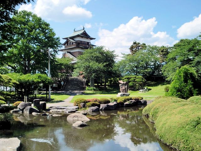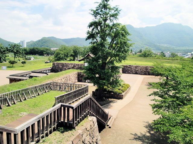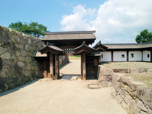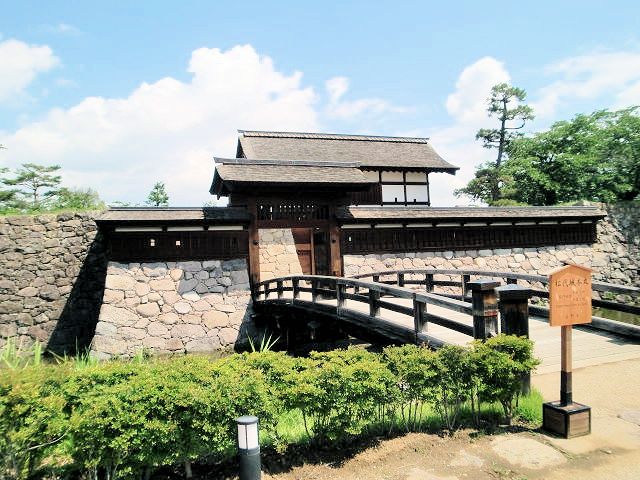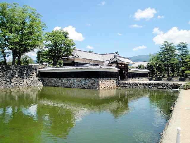 2014/07/01梅雨の合間の好天に恵まれ、今回も早朝に起床しての出発です。これは、私なりのポリシーがある訳ですが、何の事でもない時間の余裕と所々で休憩を取るという他愛もないことです。しかしそれが、正しく「旅情あふれる憩いの地」を訪れる為の、心のゆとりでもある訳です。さて、まず本日最初に訪ねるお城は、長野地方の城跡には百名城の登録地が2ヶ所ありますが、その内の1つで海津城跡公園にある松代城が目標です。名古屋から高速で約270qありますが、単純に考えて4時間のドライブと1時間の休憩が必要です。長野ICに着いたのは10時に5分前とほぼ予定通り、そして松代城跡まで7分位で到着です。近くに駐車場も設けられています。景観は長閑な田園地帯で観光地といった雰囲気ではありません。しかし都会にある城跡から考えると、そこがとても癒されます。所見は砦のような建物ですが以前訪問した上田城にもよく似ています。沿革は永禄3年(1560)に武田信玄によって築かれ、高坂昌信(こうさかまさのぶ)こと春日虎綱 (かすがとらつな)を城将としました。当初「海津城」と呼ばれていたこの城は、武田氏北信の要の城であったようです。川中島の合戦には、この城が舞台に繰り広げられました。武田氏滅亡後は織田信長、豊臣秀吉そして徳川家康の直轄地になり元和8年、酒井忠勝が出羽庄内に移り、替わって奇しくも元武田氏傘下の真田昌幸が血筋の真田信之が10万石を領して入封し、以後明治までこの地を替わることなく続きました。豆知識として英才、佐久間象山もこの信州松代藩の下級武士の子として誕生(1811~1864)しています。幕末の日本開明の先駆けとも云える五月塾を開き、門下生には吉田寅次郎(吉田松陰)、小林虎三郎、勝麟太郎(勝海舟)、坂本竜馬、橋本左内、武田斐三郎、河井継之助らがいました。見どころは本丸太鼓門、関連施設(真田宝物館、真田邸、象山記念館)アクセスはJR長野駅から川中島バス「松代行き」で約30分