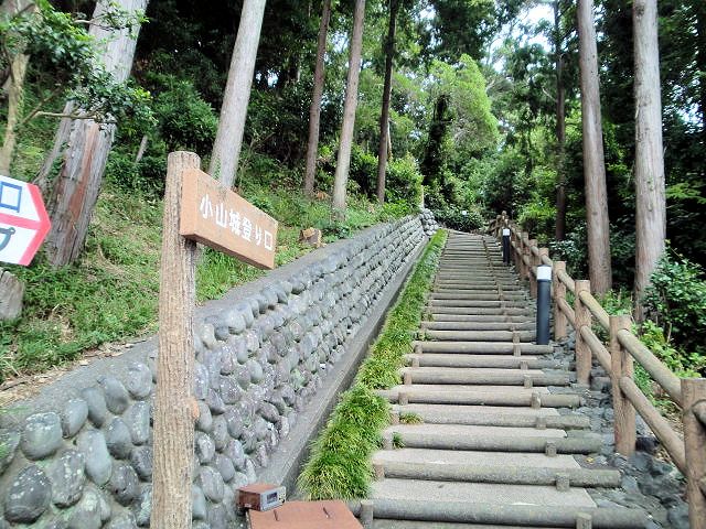 2014/09/20山中城跡(静岡県三島市)よりの帰路ですが、以前にネットで模索して於いた静岡市より南西の御前崎方面の榛原郡(はいばら郡)吉田町の模擬城を訪問することにしました。指定文化財ではありませんが、自己の感性から矢張り建物にそそられるものがあるのです。兎に角行って見ることにしましょう。旧東名高速で沼津ICから吉田ICを経て約1.9kmのところに三層五階の模擬城がありました。実際には天守があった訳ではなく犬山城をモデルに建てられた展望台兼資料館の模擬城です。周りに高層建築等がなく能満寺山公園(のうまんじやま公園)の小高い場所に建っているので景観は、プチサプライズという感じですかね、是非一度訪問されては如何でしょうか。概要は今川氏によって遠江(とおとうみ)南東部の大井川西方に築かれた山崎の砦が、このお城の始まりとされています。今川氏を倒した武田氏により、亀2年(1571)に築城されました。縄張りは馬場信春、城将は大熊朝秀(長秀)で、諏訪原城と共に大井川西方の防衛ラインを形成し、高天神城(たかてんじん城)攻略の為の拠点となっていました。また、諏訪原城落城後は高天神城への補給路の要ともなっていました。天正10年(1582)には甲州征伐のため駿河と甲斐に向け出陣した徳川家康の攻撃を受けて落城しました。小山城は遠江国(とおとうみのくに)と云われ榛原郡吉田町にあったお城で、上記の諏訪原城(すわはら城)と高天神城(たかてんじん城)とともに武田家と徳川家との争奪の渦中にたたされた城でした。豆知識として、諏訪原城跡は現在の静岡県島田市金谷にあり、徳川時代には牧野城とも云われ、高天神城は静岡県掛川市上土方下土方にあったお城で、別名鶴舞城と言われています。見どころは、小山城資料館、能満寺山公園。アクセスは、東海道本線藤枝駅又は島田駅よりバス静波方面行き吉田高校前下より車徒歩約5分。