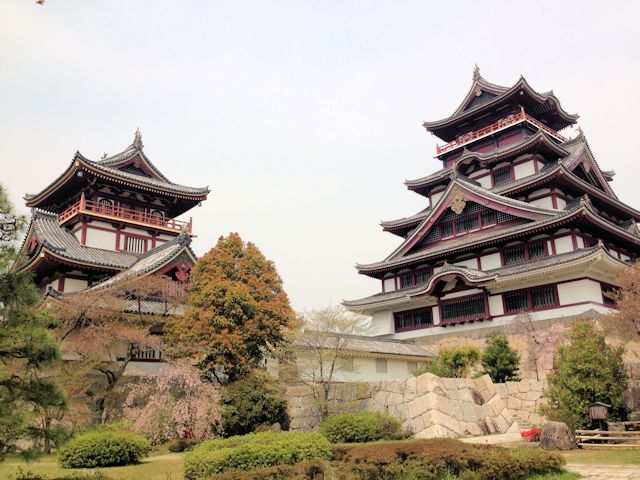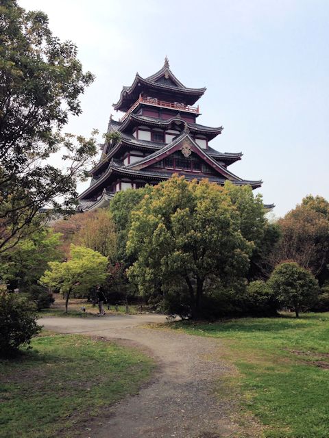 2015/04/16勝竜寺城で約1時間過し効率良く廻っているつもりでしたが、さすがに歳には勝てません。やはり休憩を若い人の1.5倍は取らなければ・・・です。再び徒歩で長岡京駅より京都駅まで戻り、そこで乗り換え目的地の伏見桃山に向います。乗り換えはJR奈良線で桃山駅まで4区間(200円)です。途中伏見稲荷を通過しますが、駅構内は観光客でごった返し状態でした。行かなくてよかったかもしれません。等と思っている間に、お目当ての桃山駅に到着です。駅からは徒歩を諦めタクシーを利用(750円)し7〜8分ぐらいの登り坂ですが、無理せず辿り着く事を優先しました。現在は伏見北堀公園と呼ばれているそうで、嘗てテーマパーク全盛期に造られた伏見桃山城(復興模擬城)を中心とした「キャッスルランド」の面影もなく、唯一残された模擬城だけが粛然と佇んでいます。城の外観に関しては訪れる観光客の記念撮影など、格好の景観として映りますが、残念ながら今は入館する事も出来ません。沿革としては、この伏見城は3度に渡って築城されましたが、最初の城は朝鮮出兵(文禄の役)開始後の文禄元年8月(1592)に豊臣秀吉が隠居後の住まいとするため、伏見指月((伏見しげつ)現在の京都市伏見区桃山町泰長老あたり)に建設を始めました。このとき築かれたものを指月伏見城とし、その後に近隣の木幡山に再築されたものを木幡山伏見城と呼んで区別され、さらに木幡山伏見城は豊臣期のものと、伏見城の戦いで焼失した跡に徳川家康によって再建された徳川期とに分けられます。豊臣期の伏見城は、豪華な様式が伝わっています。豆知識ですが、元和5年(1619)に廃城となりましたが、このときの建物や部材は二条城や淀城、福山城などに移築されました。伏見城の跡には元禄時代ごろまでに桃の木が植えられて桃山と呼ばれるようになり、そして現代に至り伏見城は桃山城あるいは伏見桃山城とも呼ばれるようになりました。見どころは、城郭、桓武天皇柏原陵、明治天皇伏見桃山陵。アクセスは京都から京阪線「伏見桃山駅」より徒歩約25分。近鉄京都線「桃山御陵前駅」より徒歩約25分。JR奈良線「桃山駅」より徒歩約20分