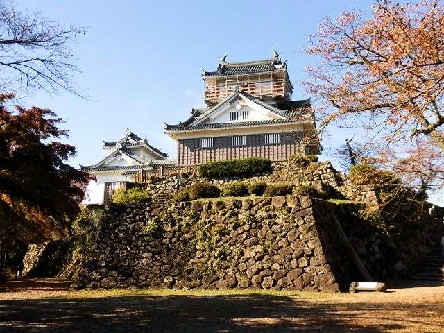 2015/11/05今回の目的地は、山城の中でも数少ない朝霧が掛かることで天空の城と呼ばれている福井県の大野城を目指すことにしました。今までに兵庫県の竹田城跡、岡山県の備中松山城、奈良県の高取城と登城するにはやや難所でしたが、大野城は比較的難易度が低そうなので問題ないと思います。自宅の出発は前回の丹後田辺城行同様に午前4時頃です。高速を使えば(1)長久手IC〜一宮JCTを経て東海北陸自動車道を白鳥ICに向うコース(2)長久手IC〜名神高速道を米原JCT経由して北陸自動車道で福井ICに向うコースがありますが、早朝出発で多少時間もあるので一般道で挑戦することにしました。勿論経費削減にも繋がります。先ずR302で清洲まで向いR22を岐阜方面に進行。途中R156に合流してそのまま白鳥へ向い白鳥からR158に変更して北西の九頭竜湖を目指します。時間の余裕があったにも関わらず、上手くいかないのが気まぐれ休憩です。なんと九頭竜湖付近に着いた時間は8時です。所要時間4時間掛かった割には残念ながら湖は霧のため全く視界0。湖畔に映る紅葉は微塵もございません。先を急ぎ雲海に浮かぶ大野城に期待しましょう。午前9時開館より30分遅れで目的地に到着。そこはなんと晴天青空高く、やや霞んで見えます。天空の城としての期待は裏切られましたが、山の頂上に毅然とした城郭を目にすることができて感謝です。標高249m 越前大野城、拝観料200円です御ゆるりと堪能して下さい。沿革は天正3年(1575)織田信長より越前一向一揆を平定した恩賞として越前国大野郡の内の3万石を与えられた金森長近が、その翌年最初に居城とした越前戌山城(いぬやま城)の近くの亀山(大野盆地の小孤峰)に城郭を築き始めたのが越前大野城の始まりです。築城に数年を要しまた。その後越前松平家が3代続いた後、天領(幕府直轄)となり、土井氏で定着するまで目まぐるしく城主が替わりました。城は安永4年(1775)に焼失し、寛政7年(1795)には天守を除いて再建されましたが、残念ながら明治維新後に破却されました。天空の城と言えば兵庫県朝来市にある2013/2/7訪問の竹田城跡(下方「竹田城跡」ボタン)がありますが、2014年に有志による「ラピュタの会」が結成され「天空の城 越前大野城」の知名度向上に努めています。また近隣には過去2013/4/18に訪ねた一乗谷遺跡(下方「一乗谷城跡」ボタン)があります。見どころは、雲海に浮かぶ越前大野城(11月〜4月の気象条件)、歴史資料館。アクセスはJR越美北線「越前大野駅」下車、ふもとまで徒歩約15分。北陸自動車道道「福井IC」から国道158号を東へ約1時間。