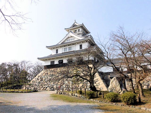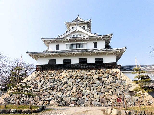 2016/03/05竹中半兵衛ゆかりの地、岐阜県の垂井町を後にして次の目的地は滋賀県の長浜城を目指すことにしました。ナビを再設定して関ヶ原ICから北陸自動車で長浜に向います、ここでサプライズを発見しました。関ヶ原と云えば天下分け目の戦い。東軍勝利の最中、薩摩藩の副将島津豊久が最後まで奮戦した烏頭阪(うとうざか)を見つけました。此処は名将島津義弘を薩摩に帰還させる為に捨て奸(すてがまり(追撃軍に対し捨て駒を放ち時間稼ぎをしながら大将を逃す、トカゲのしっぽ切りの様な戦法))で戦った場所だそうです。そう言った場所でもある訳ですが、流石に「天下分け目の関ケ原の戦い」が繰り広げられた地で至る所に多くの史跡が点在しています。この地には改めて訪れる事とし、従い今回は画像も省略しました。さて、いよいよ長浜に向かいます。その滋賀県長浜市の目的地でもある長浜城跡は長浜ICからは約15分で着きますが、花粉の影響か鼻に少し違和感があるので途中ドラックストアーに立ち寄り薬を調達しましょう。長浜城跡は琵琶湖の東岸北部にあり、湖岸道路や湖からも眺められる豊公園(ほう公園)の中に佇んでいます。城は1983に犬山城や伏見城をモデルにした模擬城として復元されたもので、2層の大屋根に望楼をのせた初期天守様式です。現在長浜城歴史博物館として運営されています。館内は5階の望楼以外全てに展示物があり資料等充実しています。歴史は天正元年(1573年)に羽柴秀吉(豊臣秀吉)が浅井長政攻めの功で織田信長から浅井氏の旧領を拝領した際に、当時今浜(いまはま)と呼ばれていたこの地を信長の名から一字拝領し長浜と改名しました。小谷城で使われていた資材や、あらかじめ、竹生島に密かに隠されていた材木などを見つけ出し、それらを使用し築城したようです。天正10年(1582年)本能寺の変の後、清洲会議で長浜の支配権を獲得したのは柴田勝家でした。そして勝家の甥の柴田勝豊が長浜城の守将として入城しますが、同年末には織田信長亡き後の天下人として対立した勝家と秀吉ですが、結局は賤ヶ嶽の戦い(現在の長浜市の賤ヶ嶽付近での戦い)で秀吉に攻められ勝豊は城ごと降伏し、秀吉が信長後の天下人にとして確立をします。天正11年(1583年)の賤ヶ岳の戦いの後は、山内一豊(土佐藩初代藩主)が入り6年間在城しました。天正13年11月29日(1586年1月18日)に起こった天正地震により城が全壊し、一豊の一人娘である与祢(よね)らが死亡しました。その後、慶長11年(1606年)に内藤信成、そして信正が長浜藩としての城主になりますが、大坂の陣(大坂夏の陣、冬の陣)の後の元和元年(1615年)に内藤氏は摂津高槻に移封され、長浜城は廃城となりました。豆知識として長浜城下には当時「楽市楽座」が置かれ、城下町として栄えました。現在その城下町には黒壁スクウェア等が、歴史ある建物と風情ある街並みを残し観光客を楽しませています。町並みの画像は、その町並みです。見どころは歴史博物資料館、豊公園、慶雲館、黒壁スクエア。アクセスは北陸自動車道「長浜IC」より約15分。JRびわこ線「長浜駅」より徒歩約7分。