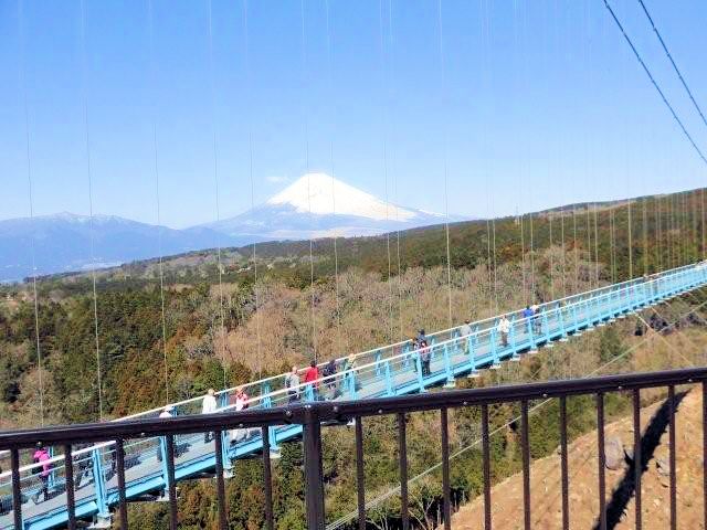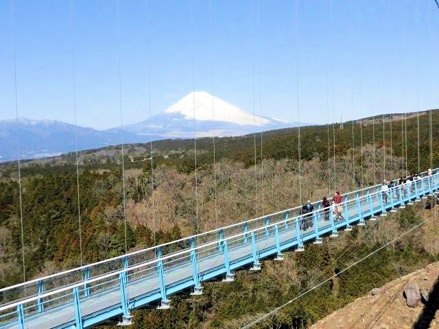 2016/03/17昨年よりTV等で紹介されている日本一長い大吊橋「三島スカイウォーク」を見たさに朝早く起床しました。現在5時ですが予定では、高速で沼津ICまで3時間、プラス一般道15分なので比較的近い行程です。お馴染の長久手ICをスタートし、途中休憩等を取りながら由比PAにて富士山を撮影です。さすが世界遺産で天気も良く、久しぶりに感動しました。沼津IC到着は9時過ぎと少々タイムロスし、それにも況して一般道でも30分以上掛かってしまいました。結局到着した時間は9時45分と長久手より4時間以上掛かりました。実はこの三島市には2014年9月20日に、百名城の一つとして登録されている山中城跡を訪問したことがありますが、まさかこんなに身近なところに建設されているとは思いませんでした。さてこの日本一長い大吊橋の名称「三島スカイウォーク」は、2015/12箱根西麓に全長400m大吊橋として誕生しました。今や九州の九重夢吊り橋の390mを抑えて日本一に輝き、吊り橋からは世界遺産の富士山や、日本一深い駿河湾を望む絶景スポットとして脚光を浴びようとしています。将来は日本の観光名所の一つとして、四季折々の変貌と記憶を刻む事でしょう。アクセスは東名高速道路「沼津IC」より約15分。JR「三島駅」よりバスで約25分。入場料1000円 見どころは大吊橋からの大展望、スカイガーデン(花が降るショップ)