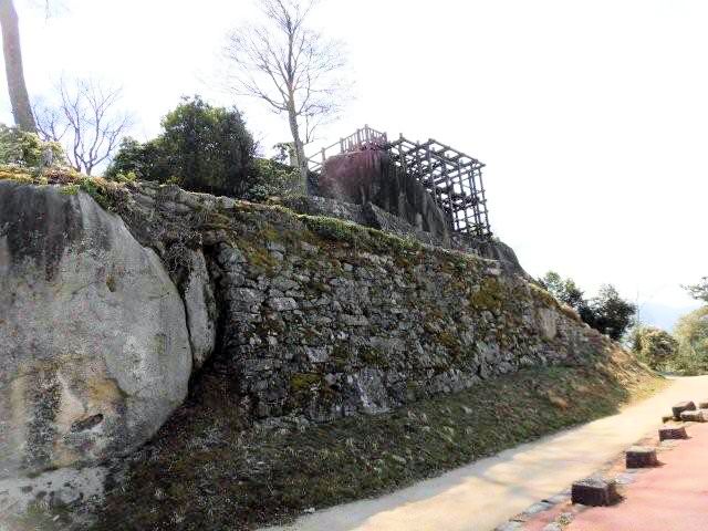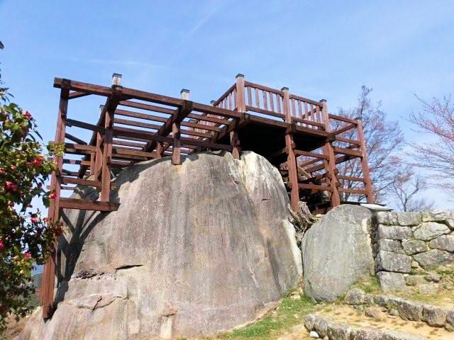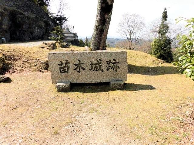 2016/03/31漸く桜のシーズン真っ盛りとなって来ました。私の住んでいる長久手も8分咲きとなり、如何にも新しい年度の幕開けが始まった感じがしますが少し大袈裟でしょうか。ところで本日の訪問先は山間部にある為、桜には未だ少し早いかもしれないと思われます、岐阜県は中津川市にある苗木城跡(なえき城跡)です。行き方は、自宅から10分の猿投(さなえ)グリーンロード「八草(やくさ)IC」より東海環状道路の「豊田藤岡IC」に入り、「土岐JCT」経由で中央道上り車線より「中津川IC」を目指します。所要時間は約55分(一般道10分含む)です。現地では苗木遠山資料館(入館料320円)の入館料を払えば、駐車場が無料で利用できます。所見は、山城で巨大な岩石を多く利用しているため、かなり複雑な造りで苦労したのではないかなと思われます。現在は城跡の頂上に天守展望台が設けられています。CGで復元されたイメージは、正に宮崎駿氏の作品を彷彿させるジブリの世界に見えます。歴史は、鎌倉時代より地頭(じとう(鎌倉幕府や室町幕府時代に公領を管理支配する為に設置した職)としてこの地の苗木郷(中津川市苗木、坂下、福岡地区)を治めていた遠山氏は、戦国時代になると高森山に城を築き、織田氏や武田氏と縁戚関係を結び勢力を広げました。本能寺の変の後、豊臣氏に従わなかった遠山氏は一時城を追われ、徳川氏に身を寄せましたが「関ヶ原の戦い」に先立ち、家康より東濃((とうのう)現美濃の東部)奪還を命じられ、苗木城を取り戻しました。又この功績により苗木領1万石余を賜りました。これより遠山氏は苗木領主として、初代友政から12代友禄にわたり一度も国替えが無く、江戸時代を通して明治初期まで此の地を治めました。見どころは苗木城跡、苗木遠山資料館。アクセスは中央道「中津川IC」より257号線城山大橋経由で約10分。JR中央線「中津川駅」より北恵那交通バス「苗木」下車、徒歩約20分