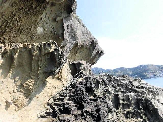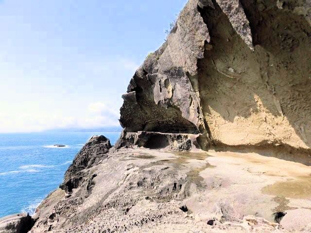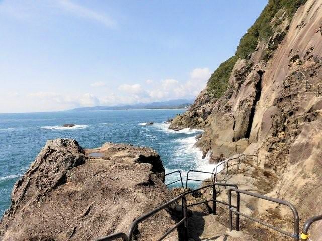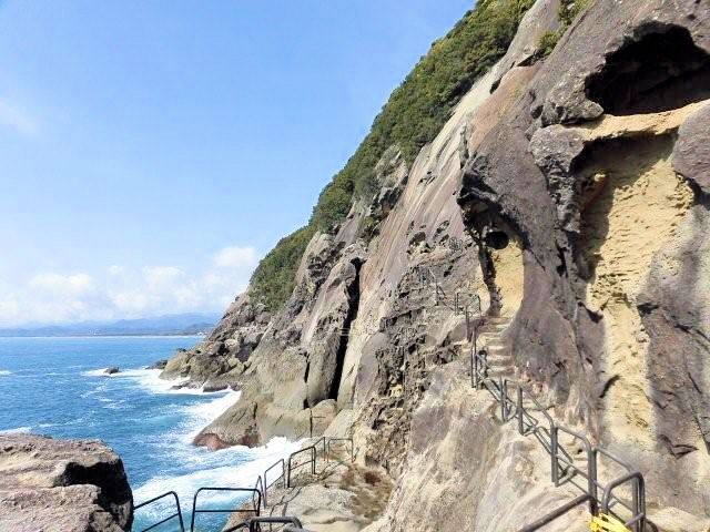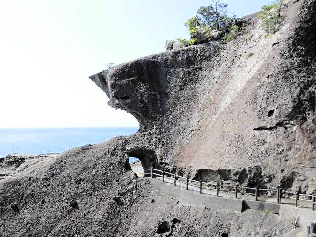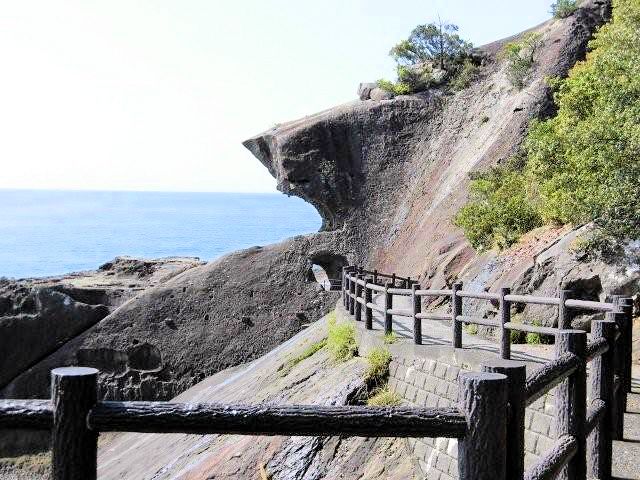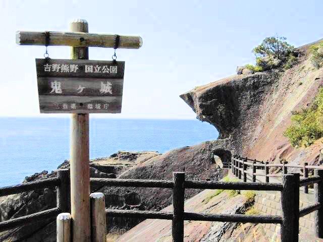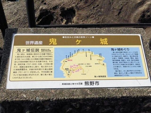 2016/04/05今回の目的地は三重県から和歌山県に繋がる紀伊半島の景勝地(熊野古道)を訪問することにしました。長久手ICより上社JCTを経由し、名古屋第2環状自動車道を通り、名古屋西JCTより東名阪自動車道を伊勢方面(伊勢自動車)に乗継ぎ、勢和多気(せいわたき)JCTを経由し紀勢自動車道に入り、無料区間を含め終点の尾鷲北まで走行し、そこから一般道の新国道R42(熊野尾鷲道)を通り、熊野市の玄関口になる熊野大泊(くまのおおどまり)まで、約5時間で到着しました。最初に訪問したのは三重県立熊野古道センターです。この場所は鬼ヶ城(世界遺産の一部)への入口であり、勿論観光名所ということになります。隆起した大岩盤が海に洗われてできた荒々しい所で、国の天然記念物と名勝に指定されています。伝説としての名前の由来ですが、坂上田村麻呂が桓武天皇(かんむ天皇)の命を受けて、鬼と恐れられこの地を荒らし廻っていた海賊の多娥丸(たがまる)を征伐したと言う事だそうですが、同時にこの地が鬼の住む地として荒々しい景観だった所からも起因しているのではないでしょうか。 歴史は室町時代(1523年頃)に有馬忠親(ありまただちか)が隠居城として山頂に築城したのが鬼ヶ城本城跡です。有馬氏はのちに堀内氏によって滅ぼされ、その後堀内氏は豊臣秀吉に仕え「関ヶ原の戦い」まで当地を治めました。見どころは隆起岩石鬼ヶ城、展望台(鬼ヶ城本城跡)。アクセスはJR「熊野駅」より徒歩35分。「熊野大泊IC」(新国道42号線)より約5分