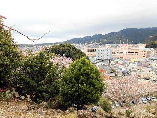 2016/04/05まだ、12時を過ぎたばかりと少しビックリ気味です。長久手市より朝が早かったこともありますが、高速道路や三重県の峠越えが自動車道に整備されたこと等、交通条件が頗る良くなったおかげです。十年一昔であれば南紀方面は秘境と云われ、あまり足を踏み入れなかった地ですが、本当に便利になりました。そうこう感慨に耽っている間に、いつしか三重県から和歌山県に突入です。これより目指すは新宮城跡です。JR「新宮駅」からものの8分程度と近いところですが、私はR42号線をひたすら南下しての到着です。さて新宮城跡ですが、堅固な石垣しか残っていませんが、桜花とのコントラストが良い感じでこの時期ならではの風情ですかね。 歴史は、戦国時代末期に豊臣秀吉の甥で浅野幸長一族の浅野左近大夫によって、本格的に城の建設が始められました。その後江戸時代に新宮領主となった水野重仲(みずのしげなか)により天守閣を中心とした城が完成しました。明治維新の後に遺構はほとんど壊され、今は石垣が残るのみです。城の別名から丹鶴城公園(たんかくじょうこうえん)として整備され、お城の高台からは新宮市内はもちろん、熊野川や熊野灘も見渡せます。 豆知識として、この城の別名「丹鶴城」の由来はこの地に丹鶴姫(源為義の娘、源頼朝、義経、義仲の叔母)が開いた東仙寺や住居があった事や、またの別名「沖見城」(おきみじょう)と呼ばれたのは、この城から熊野灘(この地から望む外海の名称)を望めるからと云われています。見どころは、城跡、桜、城跡よりの熊野川や熊野灘の遠望。アクセスはJR「新宮駅」より徒歩約8分
