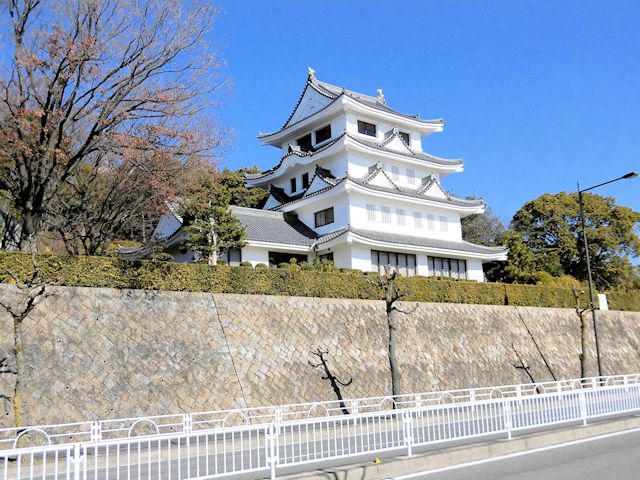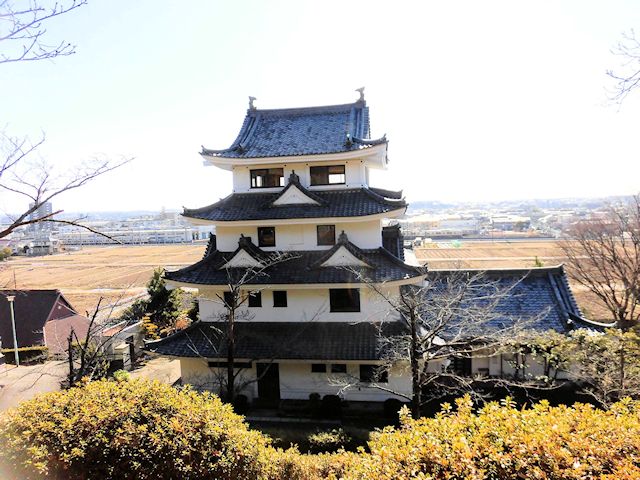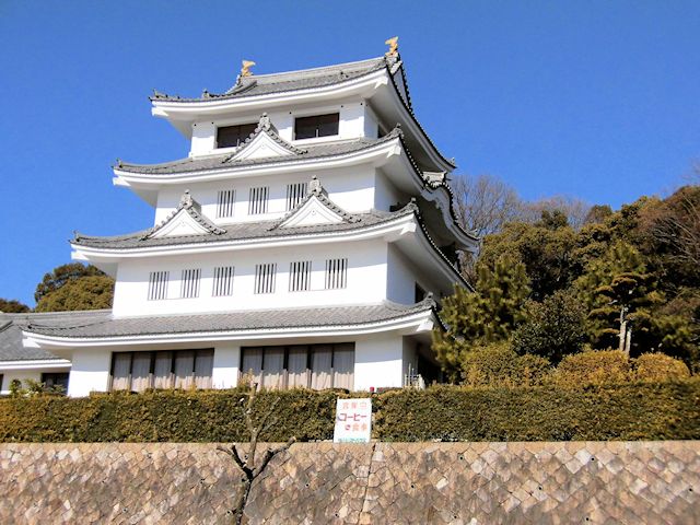 2017/01/25年が明け、今年になってからあまり出掛けていません。決して仕事が忙しい訳ではありません。だから言って出無精でもないのですが、そう、ただ寒いだけです。今日は、晴れて暖かいので散歩がてらに尾張旭市に行くことにしました。以前から気にはしていたのですが、「尾張旭市新居町」〜「尾張旭市城山町長池下」という地名の場所に模擬城があります。自宅から約6kmと近く、大きな公園に隣接していて地元では城山公園と云われています。運悪く水曜日が休みだったので模擬城には入館できませんでしたが、一見資料館に見えます。回りは小高い山といった風で大きな池もあり、スカイワードというタワーが市民の憩いの場となっています。一応確認の為タワー内に入ることにしました。9F建てで、展望台からは名古屋の街並が眺望できて、意外な収穫を得ることができました。本題の新居城(あらい城)ですが、タワー内にあった資料によれば公園全体が城跡だったと云われています。歴史としては、1361年水野又太郎良春が築いた城です。1331年「元弘の乱」(御醍醐天皇を中心にした鎌倉幕府討幕運動)に於いて、吉野金峯山寺(よしのきんぷせんじ)僧兵団の将として戦っていましたが、「建武の新政」(1334〜1336)の頃、先祖の地である志段味(しだみ 名古屋市守山区)へ帰えりました。南北朝(1336)の戦乱期に、吉野(現在の奈良県吉野郡)に呼ばれて南朝方として戦いましたが、再び帰郷し志段味の山林や原野を開拓しました。志段味城(1361)を一族に預け、新居に居を構えて田畑を開墾し、城を築いたと言われています。現在は城山公園に変わり、曲輪、土塁などが残っています。地元の英雄とも云うべき水野又太郎良春の銅像(写真有)が城山公園から徒歩10分程の名鉄尾張旭駅バスロータリ内に建てられていましたので拝見してきました。見どころはスカイワード展望台、4重4階の模擬城、城山公園。アクセスは名鉄「名古屋駅」から「瀬戸線尾張旭駅」 まで32分。そこより徒歩約10分。