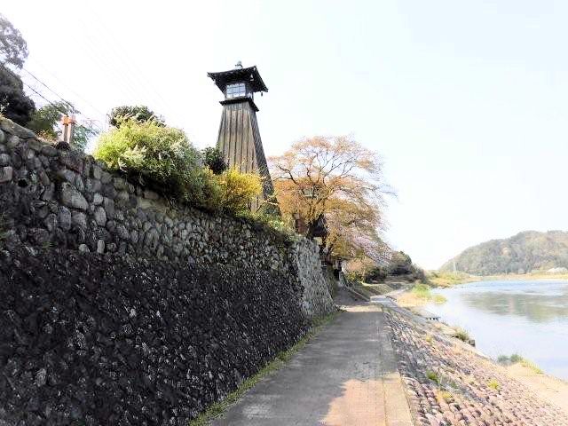 2017/04/14の朝は、晴天に恵まれ一般に云われている行楽日和です。本日はネットで検索した岐阜県の美濃市に行くことにしました。目的はやはりお城で、つまり美濃市にある小倉山城跡です。道中の行程は高速道路を使用するので短時間で到着すると思います。長久手ICから東海北陸道を経由して終着地点美濃ICへと向います。時間にして大凡1時間で、美濃市に到着したのが午前7時ごろです。此処からは国道156線で暫し走行しているうちに小高い山の上にお城を発見しました。いや、童子になった気分か歓喜が漲るようです。お城の案内版を見つつ進入していきますと、小さい櫓が眼にはいりました。道路から見えた位置とは全く違いましたが、暫く山を登ると、ありました。そしてそれはものの見事に、期待を裏切られてしいました。なんとそこは屋根の付いた展望台で、遠くから見れば天守櫓かなと思っても不思議ではない高さだったのです。ん〜残念ですが、まあ、こんなもんでしょう。折角なので、展望台から美濃の町を眺望することにしました。美濃市は私にとって意外と近場の町ではあるものの、初めて訪れる町なので色々散策することにしました。歴史としての、小倉山城は金森長近(かなもりながちか)の隠居城として築かれた城で、別名「小倉居館」ともいわれています。金森家が無嗣断絶(むしだんぜつ、無嗣断絶とは後継ぎがない意)で改易(家、土地を没収され所謂「お家お取り潰し」の意)されたことにより、わずか6年で廃城になりました。城跡には遺構として石垣と土塁が現存しています。現在は小倉公園として整備されており、本丸には模擬櫓、さらに山頂には三階建ての展望台が建てられています。また、散策に訪れた城下街は江戸時代の歴史的景観を残したまま現存しており「うだつの上がる街並み」として重要伝統的建造物群保存地区となっています。豆知識、ここで云われている「うだつ」とは、瓦屋根が語源でうだつが上がる家は裕福で上がらない家は庶民との例えから富と貧の格差を思わせる言葉となりました。見どころは、模擬櫓、「うだつ」の上がる歴史ある街並み、上有知湊(こうずちみなと)の灯台。所在地は、岐阜県美濃市泉町1571-1。 アクセスは長良川鉄道「美濃市駅」よりバスで美濃小倉公園前まで約20分。東海北陸道美濃ICより156線で美濃小倉公園まで。