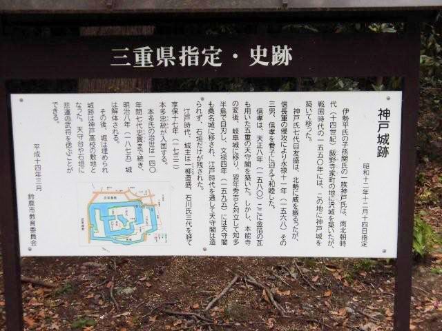 2017/05/24、亀山市の伊勢亀山城から次に尋ねる鈴鹿市にある神戸城跡(かんべ城跡)は、これまたマイナーな城跡で、所謂マニアの方が訪れる様なスポットかもしれません。ここで言うマイナーな城跡の殆どは、遊園地若しくは公共の公園でしたが、ここ神戸城跡もやはり公園でした。平日なので人が僅かしか見当りません。私としては有難いことで、ゆるりと史跡を堪能する事にしましょう。所見から云いますと野面積みの石垣が如何にも天守台がありましたよと、醸し出している風景が何とも云えません。ネットでは、大手門(顕正寺山門)、二の丸太鼓櫓(蓮花寺鐘楼)の写真が掲載されていましたが、現在、大手門は三重県四日市にある顕聖寺の山門として、また二の丸太鼓櫓は三重県鈴鹿市にある蓮花寺に移築されています。歴史の神戸城は神戸氏4代の神戸具盛(かんべとももり)が築いた城です。その後、養子にうけいれた織田信長の3男信孝(神戸信孝)によって5重6階の天守が築かれるなど、大幅な改修が行われました。この天守は桑名城に三重櫓として解体移築され、神戸櫓と呼ばれましたが現存はしていません。江戸時代には城主が度々代わり、一柳氏や石川氏が城主を務めた以降は、明治維新まで本多氏が城主となりました。