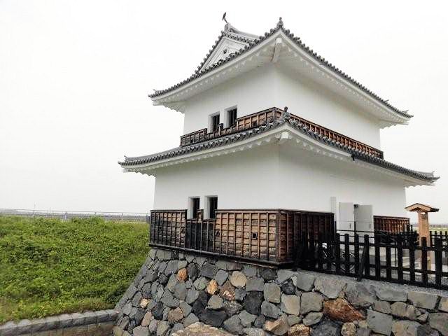 2017/05/24、神戸城の鈴鹿市をあとに、一路桑名市に向うことにしました。私事ですが、旧桑名郡長島町に実家があるのですが、殆ど訪れることなく30年以上経っています。本題に戻りまして、現在は郡部が統合されて桑名市になったことから名阪自動車道に続いて、伊勢湾岸道の長島ICが出来て非常に便利になり、桑名城跡には11時過ぎには到着しました。第一印象は大きな公園といった感じで、神戸城の様な石垣も見当たりません。敢えて言うなら、河川に佇む蟠龍櫓(ばんりゅう櫓)と本多忠勝の銅像が目立ちます。蟠龍櫓は歌川広重の「東海道五十三次・桑名」に海上交通「七里の渡し」の重要ポイントとして城が描かれています。豆知識として「蟠龍」とは、龍が天空に登り龍として飛び立つ前のうずくまっている状態の龍を指します。また、「その手はくわなの、焼き蛤」と言う言葉もあるくらい、蛤で有名な地でもあります。沿革は、永正10年(1513)に伊藤武左衛門が城館を築いたのが桑名城の起源と考えられています。関ヶ原の戦いの後、覇者となった徳川家康は慶長6年(1601)徳川四天王の本多忠勝を桑名10万石に封じました。忠勝は入封直後、揖斐川沿いに城郭の建造を開始しました。城には船着場も整備し、4重6階の天守をはじめ51基の櫓、46基の多聞櫓(兵士の宿舎)が立ち並び、また同時に城下町も整備されました。築城開始当初には四天王の一人である井伊直政も家臣を動員して普請の応援を行ったという逸話もあります。 元和3年(1617)2代忠政は播磨姫路藩に移封となり、代わって松平定勝が入城します。松平定重の時代、元禄14年(1701)には桑名市街地の過半を焼く大火に遭い、この際に天守も焼失してしまい以後再建はされませんでした。現在は九華公園として整備され、上記の蟠龍櫓も復元されて観光名所となっています。