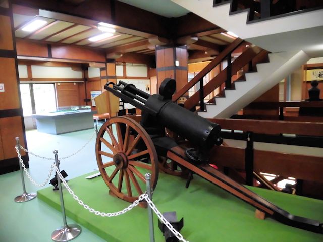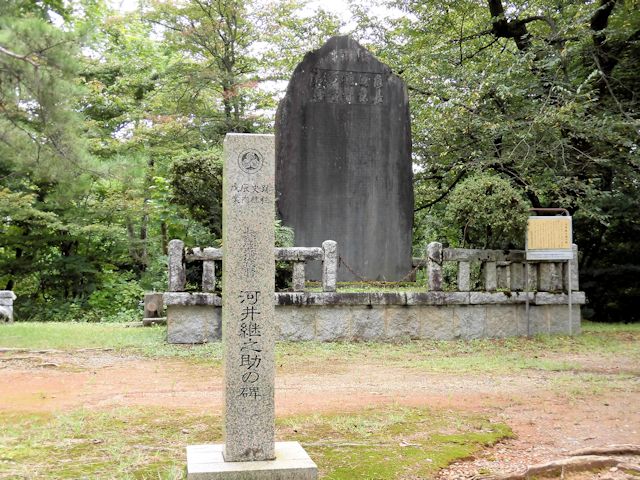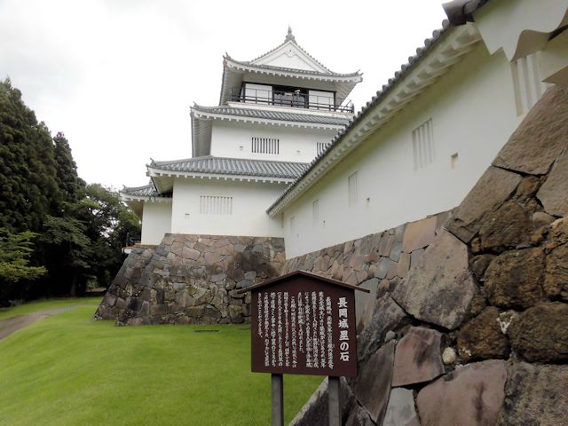 2017/09/14 長野県の善光寺を後に更に北上して次の訪問先、新潟県の長岡市にある長岡城に向います。 そこで、日本海を北上する北陸自動車道を避けて、上越自動車道の「須坂長野東IC」から「豊田飯山IC」間を利用した後、千曲川沿いに走る国道117号線で中抜きコースを取り、11時には長岡市に到着しました。 時間的にはまずまずです。 これで、高速代3,570円削減です。 長岡城は現在のJR長岡駅付近を本丸とする平城で、「兜城」や「浮島城」と呼ばれていました。 慶応4年の北越戊辰戦争で焼失し廃城となり、昔の面影を偲ばせるものはありません。 しかし長岡市は昭和43年に「蒼柴の森」(あおしの森)につつまれた悠久山公園の高台に模擬城として郷土史料館を建設しました。 平成4年には、郷土出身の先人顕彰の展示を開設し、人物を通して長岡の歴史文化を紹介しています。 長岡城の歴史は慶長10年(1605)堀直寄によって築城がはじめられましたが、完成したのは元和4年(1618)越後国長峰から入封した牧野忠成によるものです。 寛永11年(1634)忠成の二男康成に一万石を分封して与板藩(よいた藩)を立藩させ、以後代々牧野氏が続きました。 慶応4年(1868)に戊辰戦争が起こり、家老河井継之助(かわいつぎのすけ)はガトリング砲(銃口が複数ある回転式の機関銃)二門など大量の武器弾薬を購入して帰藩し、5月2日小千谷に陣を張った新政府軍の岩村精一郎と最後の談判が行われましたが交渉は決裂し開戦となりました。