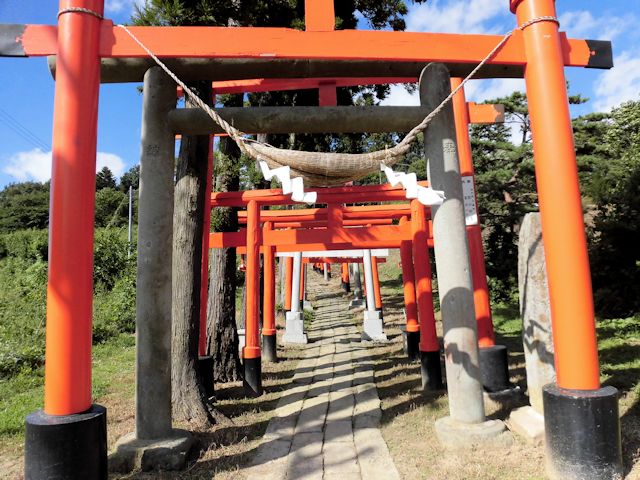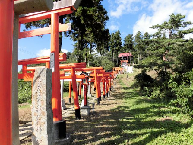 2017/09/15 本日最後の訪問先となったのは棚倉町から友人宅へ帰る途中にたまたま見つけた、ちょっと変わった稲荷神社です。 地元の人にとっては、珍しくもない光景なのでしょうが、少しサプライズだったので紹介させて頂きます。 「高屋敷稲荷神社」の境内までの参道には数多い朱色の鳥居が連なっている独特な景観があります。 歴史は、宝永年間(1704〜1711)の飢饉の際に、年貢を免除してもらったことに感激して、正徳3年(1713)に建立されました。 「享保」「明和」「天明」の飢饉を経て、信仰者が増えたようです。 現在の社殿は大正15年(1926年)10月の建立です。