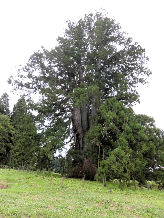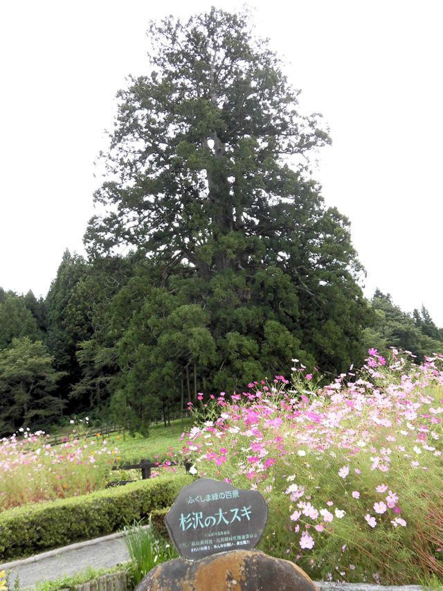 2017/09/16 本日最初の訪問先は、友人宅より20分ぐらいの処にある杉沢の大杉を見学して来ました。 土曜日にしては観覧者もなく、ゆっくりゆったりと訪問する事ができました。 高さ約45m、幹の太さは10mを超える巨大な一本杉です。あの樹齢千年以上の屋久杉より大きいともいわれ、これだけの巨木で樹勢が旺盛なスギは全国でもあまり例がないようです。 しかし、それも現在はやや低くなっているとも云われています。(※諸説あり) 歴史は、江戸時代初期の寛永20年(1643)のこと。 二本松藩主丹羽光重(にわみつしげ)が領内を巡視した際、この大杉に目をひかれ、そこで光重はこの土地を「杉沢」と改称させ、スギの名を「杉沢の大杉」としたといいます。 であればこそ、この大杉にはカタカナ名書きは似合わないですね。 また杉の妖精が娘となって現れた伝説もあるようです。