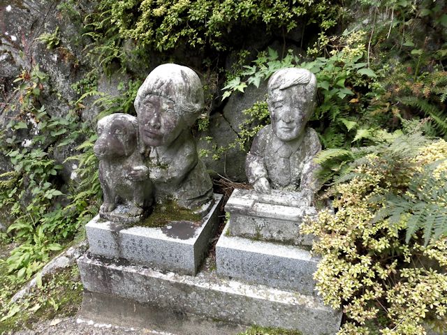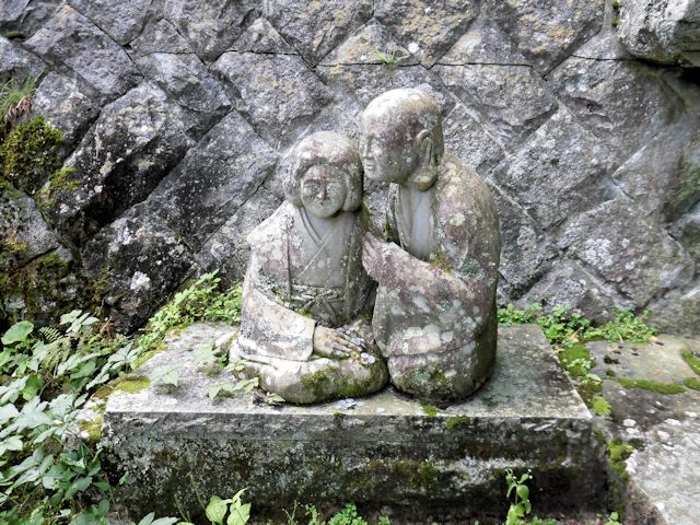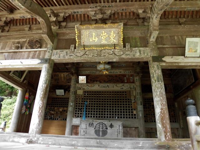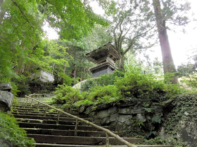 2017/09/16 NEXT訪問先はちょっと変わった石仏群が大量発生しているお寺です。 時刻は13時過ぎ、まだ日が高く明るい状態ですが境内は鬱蒼と茂った木々や、静寂に包まれた雰囲気の中、いきなり珍石仏のお出迎えで幕が開きました。 本堂までの石段には鐘楼や摩訶不思議な羅漢さんが右往左往していて、唯目を見張るばかりです。中腹には巨岩を背に本堂が佇み、その裏側にはびっしりと石仏群そして石壁に彫刻された仏画が参拝客を睥睨(へいげい)しているように見えます。 私たち善人者には笑顔に見えますが、そうで無い方にはご用心かもしれません。 ネットではカオスな羅漢と紹介されていますが、カオスとはギリシャ神話の原初神で、有限の世界が生まれる前の神で混沌とした状態(時代)から生み出された事を意味している為、色々な顔や風体の羅漢像を然うしてその様に紹介されたものだと思います。 この満福寺は、標高659mの東堂山の中腹に建つお寺です。 史跡名勝天然記念物に指定された杉並木の表参道を抜けると、巨大な自然石の上に建つ東堂山鐘楼にたどり着きます。 近世木造建築の粋を集めた小野町のシンボル的存在で、境内の奥には450体以上の個性あふれる羅漢像が奉安されております。