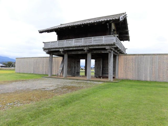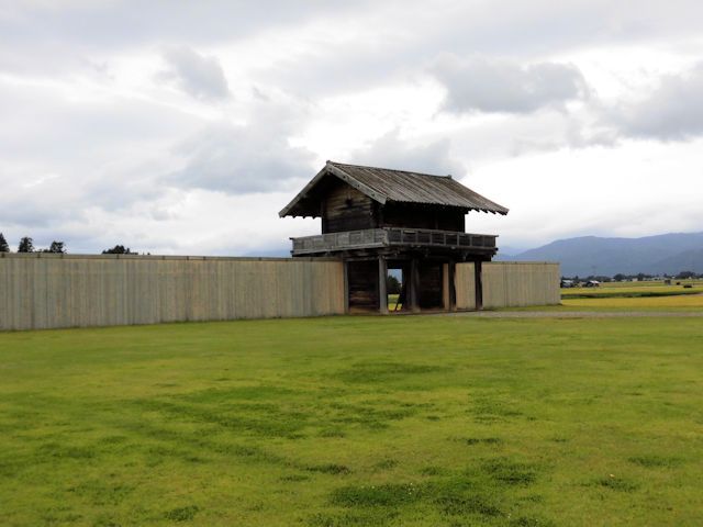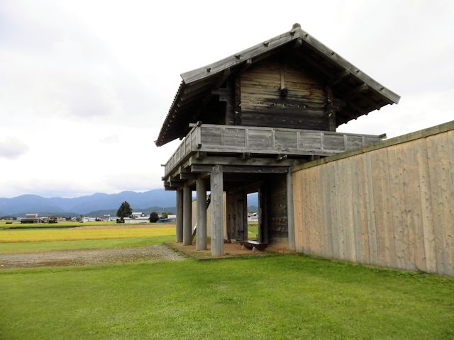 2017/09/18 酒田市で昨年も友人と城を求め、手探りで発見した城跡「砂越城跡」がありますが、まさかこんなに近い所に別の史跡があるとは思いもよりませんでした。 それは目的があって「出羽松山城」を探している時の事です。 「城輪柵」と言う標識を目にしたのです。 この旅の始まりに秋田県の横手城より角館武家屋敷に向かう途中に同じような「払田柵」と言う標識を発見したからです。 きっと同様史跡だと思い、行ってみる事にしました。 勿論、史跡の背景を包括的に捉えて、時間と余裕があれば見落とすことはないのでしょう。 それに私は思いつきで行動することがしばしばあるので、そう思えばデジャブのような出来事なのかもしれません。 [概要]城輪柵は平安時代の遺跡で、出羽国府の政庁跡と考えられています。奈良時代末期に秋田城(出羽柵)から移設された出羽国府跡の最有力地と考えられており、「城輪柵跡」として国史跡に指定されています。 現在は「城輪史跡公園」として整備されており、政庁南門、東門および築地塀の一部が実物大に復元されています。 また毎年8月に、篝火(かがりび)の下で民俗芸能「国府の火まつり」が演じられています。 因みに秋田県の払田柵よりも歴史が古いと思われます。