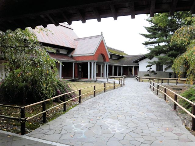 2017/09/18 台風18号が近づいているにも関わらず、秋田県の旅は続きます。 昨夜は確かに嵐のような雨風でした。台風なので「嵐のような」と言う比喩はおかしいかもしれませんが、いずれにしても道の駅にある「は~とぽ~と大内ぽぽろっこ」という長いネーミングの宿泊地は、館内レストランの食事はとても美味しく、また日本海に近いせいか海の幸などの値段もすこぶるリーズナブルで有り難く、とても寛げる空間でした。 目覚めた頃には台風は北海道に過ぎ去り、雨もほぼ上がり風は幾分強い程度で、幸運に恵まれまれたようです。 最初の訪問先の宿泊地の由利本荘市北方の亀田地区にある「亀田陣屋」に向かいます。 到着したのは午前8時40分。 台風の影響でしょうか観光客は誰もいません。 現在亀田陣屋跡(亀田城)は佐藤八十八美術館の敷地となっています。 と書きましたが、史跡としての陣屋跡はここではなく、隣の旧亀田小学校の敷地あたりだった事が帰宅後の調べでわかりました。 [沿革]亀田陣屋(亀田城)は江戸時代に亀田藩の藩庁として利用された陣屋です。 元和8年(1622)に山形藩主の最上氏が改易され由利郡は本多正純の所領となりましたが、その正純も翌年改易となったため由利郡は「亀田藩」「本荘藩」「仁賀保藩」「矢島藩」に分割され、亀田藩には岩城修理大夫吉隆(佐竹義隆)が入りました。 当時は城を持つ事が許可されず、吉隆はかつての赤尾津氏の居城「赤尾津城」の麓に、陣屋を築き、以降代々岩城氏が藩主をつとめました。 幕末の八代当主「岩城隆喜」の代で城主格大名となり城を持つ事が許可されましたが、財政難の為城は建築されず陣屋は亀田城と呼ばれるようになりましたが、戊辰戦争で焼失しました。 この亀田地区の「亀田陣屋」及び「天鷺城」についての情報収集に、「由利本荘市観光協会 観光文化振興課」の工藤様には大変お世話になり、この場を通しお礼申し上げます。 ありがとう御座いました。