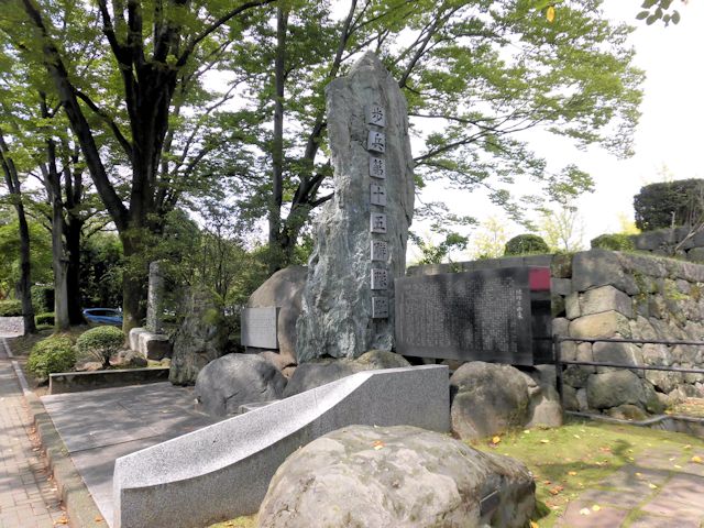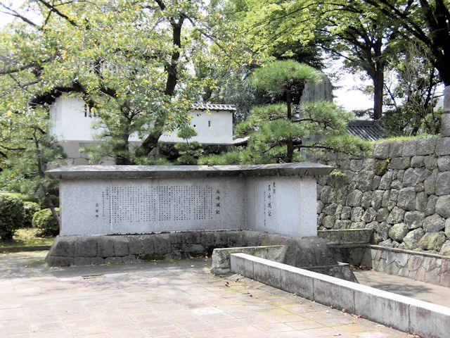 2017/09/20 二本松市の友人宅を後に、いよいよ帰路に就くことになりました。 高速道路を使いながら、史跡探索を兼ねていきたいと思います。 行程は東北自動車を南下して栃木県の岩舟JCTから北関東自動車道を経て群馬県に入ります。 ここで身近にある高崎城跡をチョイスし、少し休憩を兼ねながら見学します。 高崎ICから約15分で高崎市内のほぼ真ん中に高崎城跡公園があります。 周りは市役所や音楽センター、そして公共施設が建ち並ぶ中に乾櫓がひっそり佇んでいる姿は物寂しさを感じさせます。 殆ど人も訪れない友人宅の近隣の山里にあった城とは情景が一変したからでしょうか。 [歴史] 慶長3年(1598)徳川家康が井伊直政に命じ、開通直後の中山道(当時の中山道は現在の東京都より埼玉県、群馬県、長野県、岐阜県、滋賀県を経由し京都府に至る)の要衝「和田城跡」(高崎城の周辺あった城の跡地)に築かせた平城で、元和5年(1619)になって入城した安藤氏の三代に亘る77年間に全城郭が完成しました。 またこの「高崎城」は寛永10年(1633)に起きた徳川忠長幽囚自刃事件で有名です。 現在は乾門と外堀の一部がわずかに残っています。 [人物像] =井伊直政=(1561-1602)は徳川家康の家臣で徳川四天王の一人です。 彦根藩井伊家の祖でもあり、父は遠州井伊谷(現静岡県浜松市)の豪族で今川氏の家臣でした。 武田信玄が最初に採用した赤備隊(朱色の甲冑隊)が強軍だった為、そのイメージを継承する意味で井伊直政の軍も採用したとされ、この井伊直政と真田幸村の「赤備隊」が有名です。 =徳川忠長=(1606-32)徳川秀忠の三男で、「駿河」「遠江」「甲斐」「信濃」のうち五五万石を領し、駿河に住んでいました。 兄家光に対抗(家督争い)したため罪に問われ、高崎城に幽閉されました。その後城下の大信寺において自害(自刃)しました。 これには諸説あり忠長のご乱行(狂気)の為だったとし、自刃ではなく切腹させられたと言う説もあるようです。