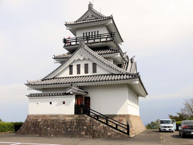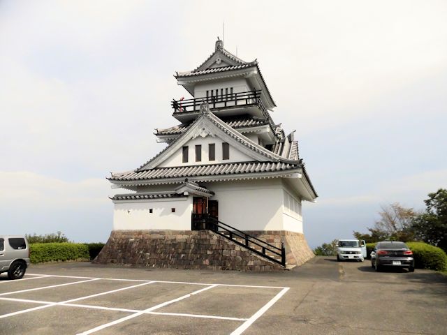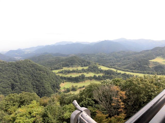 2017/09/20 高崎市内から一般道で約1時間の走行です。 高崎城跡の次の目的地は上信越自動車道の「吉井IC」よりほど近い「一郷山城」(いちごうやまじょう)です。 牛伏山の尾根の頂きから微かに見える櫓がその目標です。 車で登れるので諦めず登城できそうです。 登り始めて20分くらいですか、模擬城が目の当たりに見えてきました。 舗装された駐車場にぽつりと佇み、とてもユニークな感じがします。 周辺を見渡すと牛伏山自然公園の案内図があり、結構広範囲の観光地となっているようです。 また、櫓の中は資料館と展望台として利用されています。 [概要] 一郷山城は関東管領上杉憲実が鎌倉公方足利持氏と争った際に築いた城です。 実際は小規模な砦で、狼煙台として使われたと推定されます。 武田信玄によって攻め落とされた際に全焼しました。 現在は模擬天守が建てられていますが、時代背景や史実は反映されていません。 展望台と名付けられているだけに、最上階からの眺めが素晴らしく、望遠鏡も無料で使うことができます。