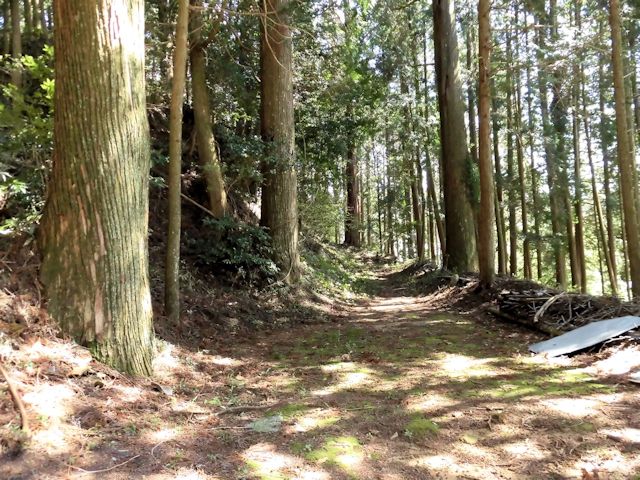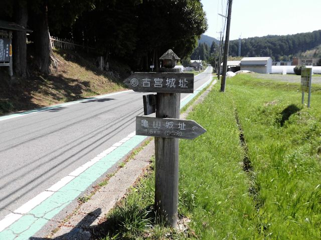 2018/04/21 「石橋城跡」と「文殊山城跡」を経て漸く、お目当ての「続100名城」登録場所の「古宮城跡」(ふるみや城跡)に向います。 場所は「石橋城跡」から「文殊山城跡」に向かう途中にあり、「石橋城跡」から700m程しか離れていないので徒歩でも十分巡ることが出来ます。 そう言う訳で、順序としては「石橋城跡」より、この「古宮城跡」そして「文珠山城跡」に向かうのが順当でしょう。 現在は新城市では古城まつりを行っており、古宮城跡にも注目を集めています。 城跡は白鳥神社を中心に山林が覆い重なる低い丘陵地に位置し、山道は軟弱な坂道でところどころに土塁・郭らしきものが見られます。 詳細については現地の「作手歴史民俗資料館」で確認することが出来ます。 尚、スタンプ帳の登録印もこの場所にあります。 [ 沿革 ] 古宮城は元亀2年(1571)に武田信玄が築城し、その縄張り設計は馬場信春が行ったと言われています。 元亀元年(1570)に起こった「古宮城の戦い」は、武田信玄の侵攻によってこの地を治めていた国人領主(小規模な豪族的支配者層)の奥平氏は武田方に帰属をしていたのですが、元亀4年(1573)の武田信玄の死後、その奥平定能と定昌親子は徳川家康に内通し、天正元年に居城の「作手亀山城」(石橋城跡より南に約200mの位置)を退去して「滝山城」(現在の岡崎市にある宮崎神社の北にある山)に入りました。 そこへ武田軍が押し寄せたのですが、奥平一族が起こした突然の裏切り行為により、もぬけとなっていた「古宮城」は奥平定能と定昌親子の援軍として駆け付けた徳川家康軍の攻撃を受け、城は焼き払われ武田勢は敗走したことで知られています。