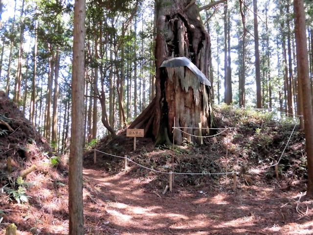 見どころ 市指定天然記念物の大ヒノキ(虎口)続100名城参照150